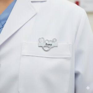 Vi har også søte halskjeder med andre motiver, for eksempel et vedheng som forestiller et stetoskop eller et hjerte.