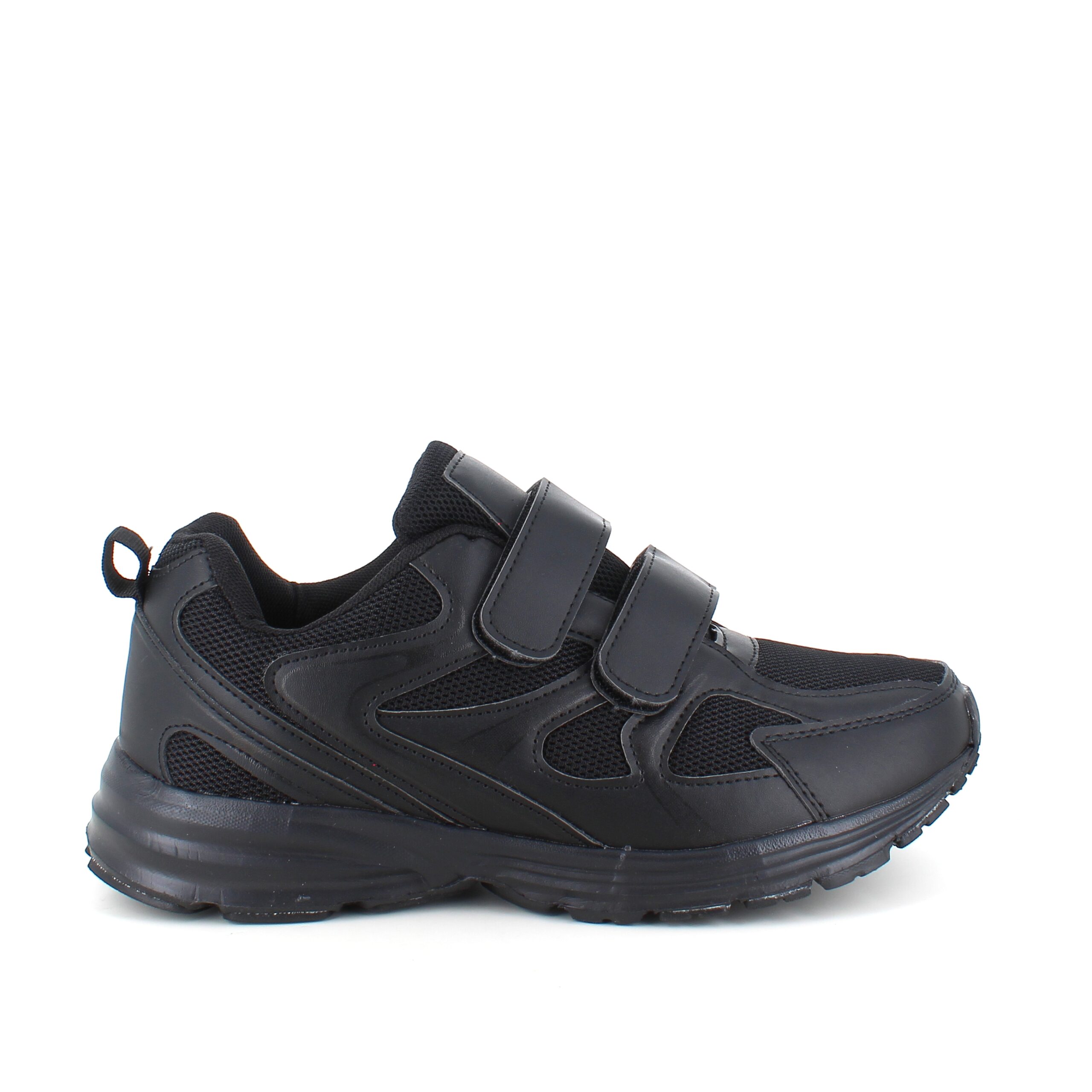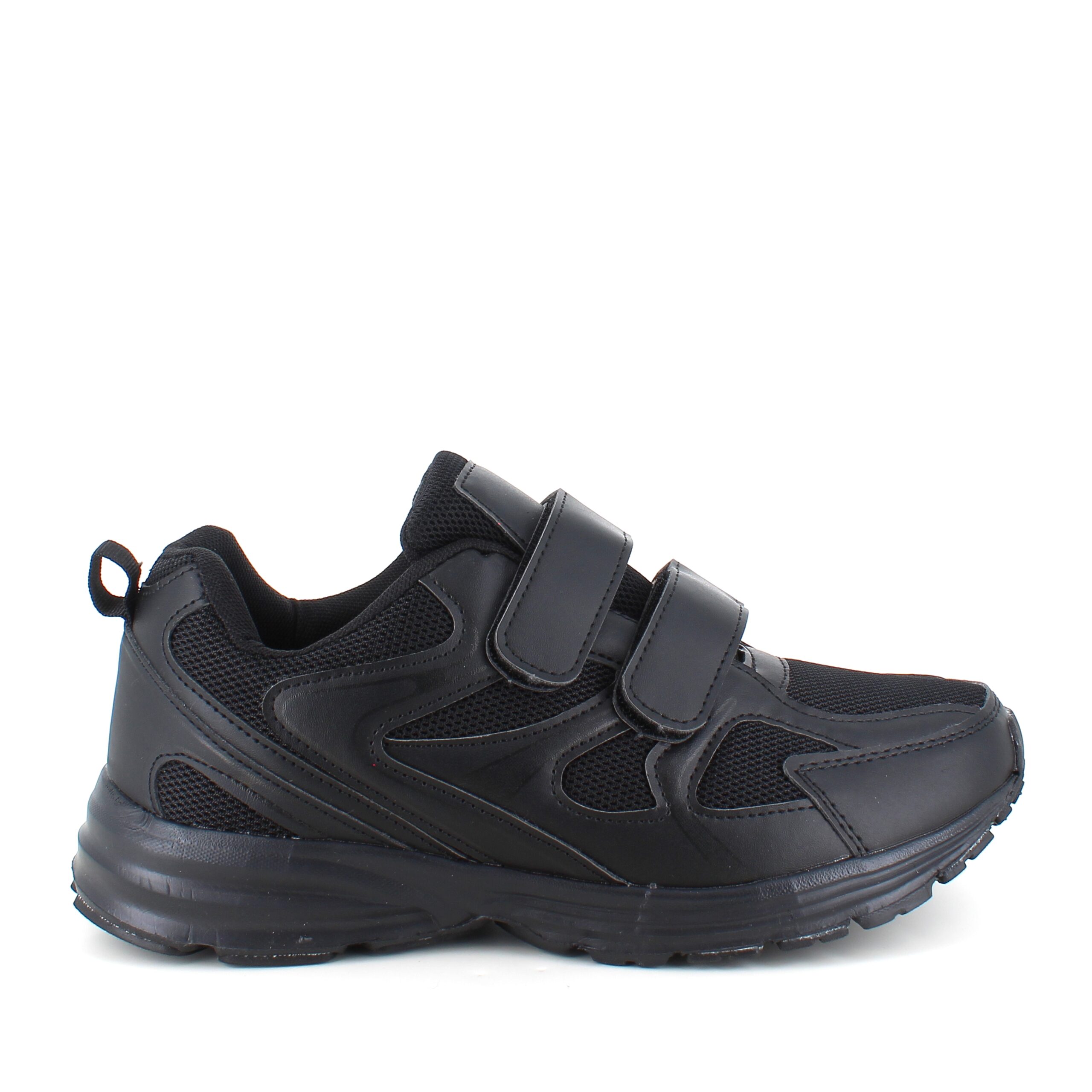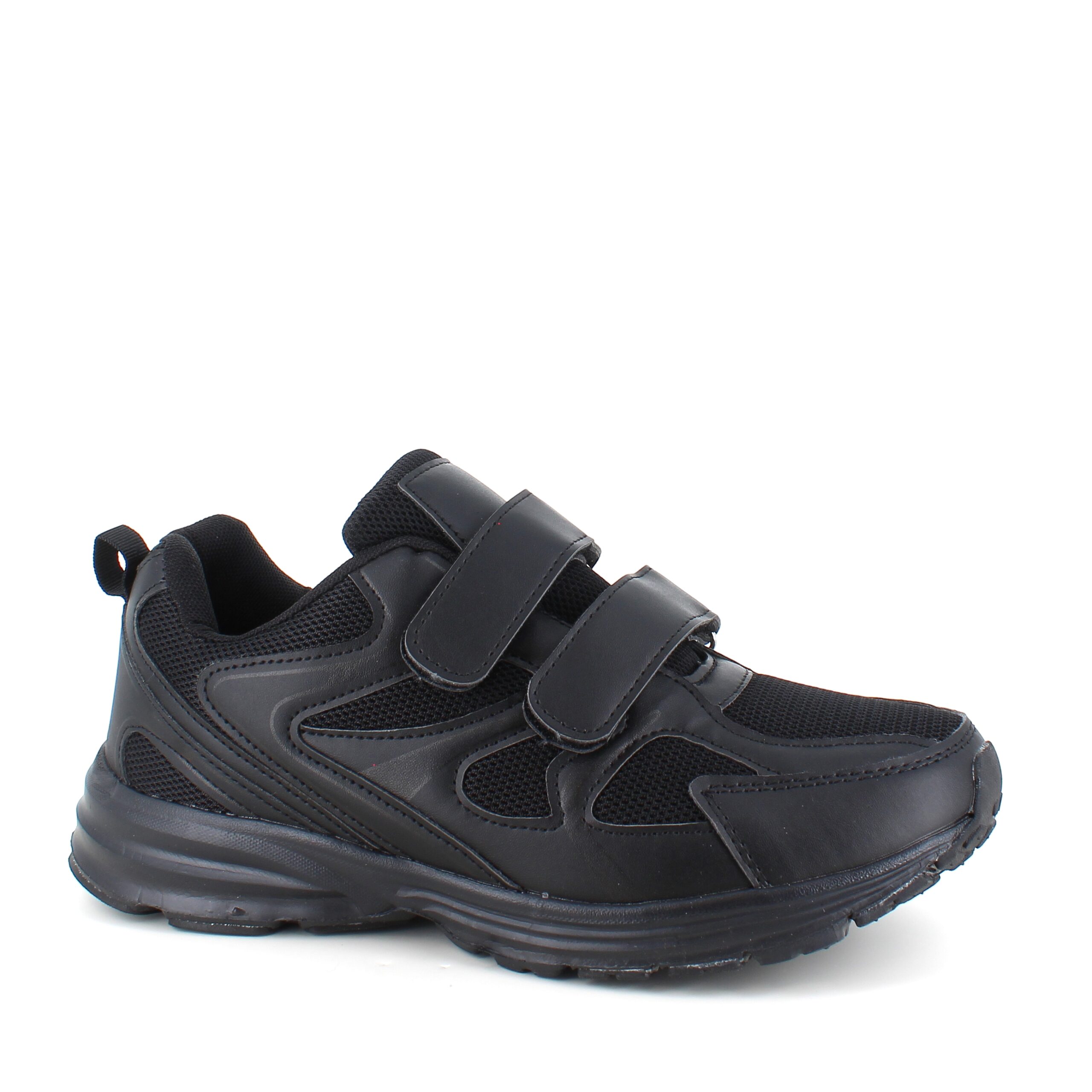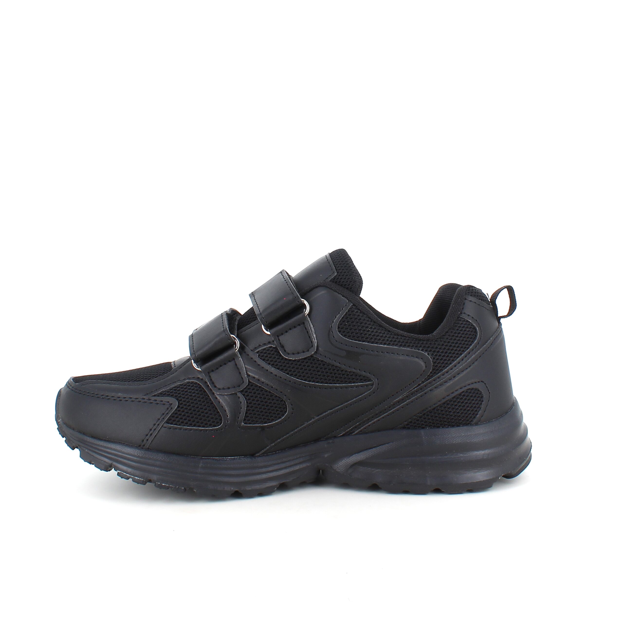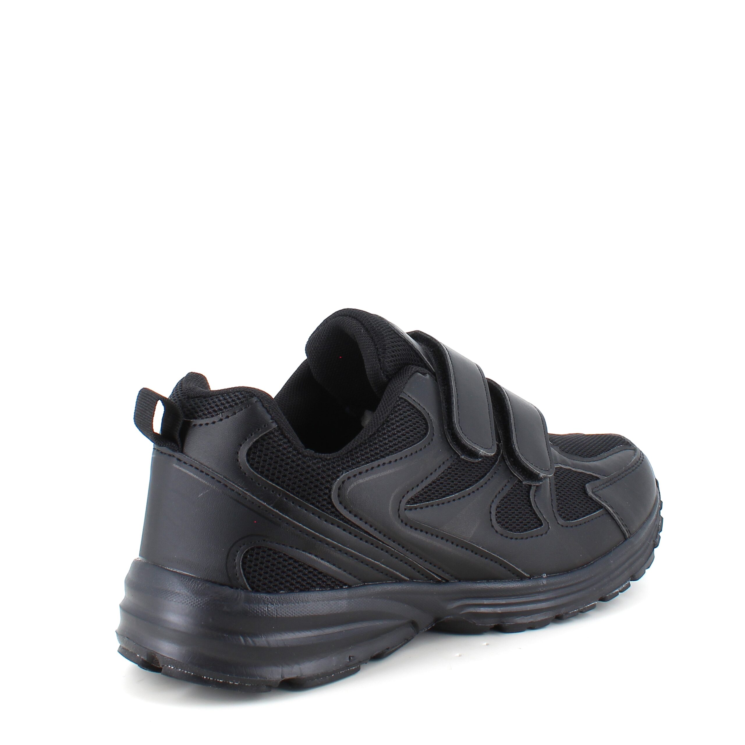 Svart sko i sporty utseende med en overdel i en kombinasjon av pustende mesh og syntetisk skinn.
