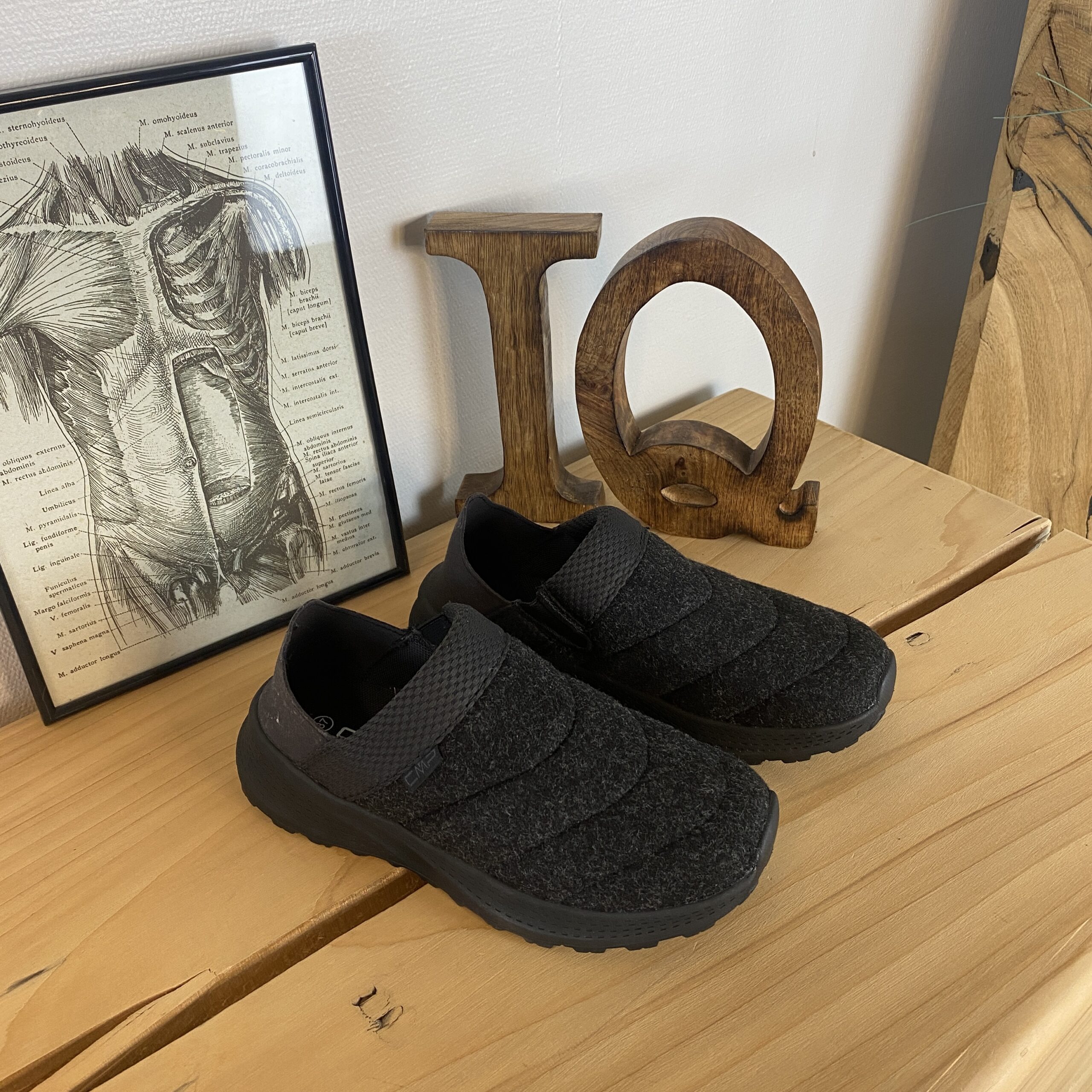 Hjemmeskoen er laget i myk filt og gir en behagelig, varm og fleksibel passform.