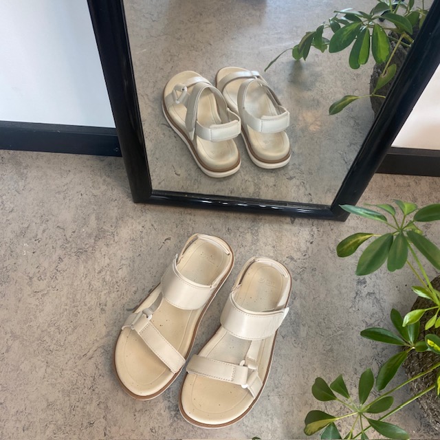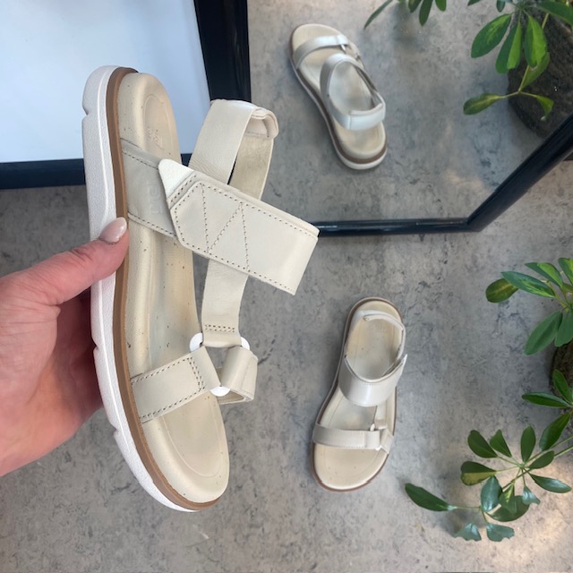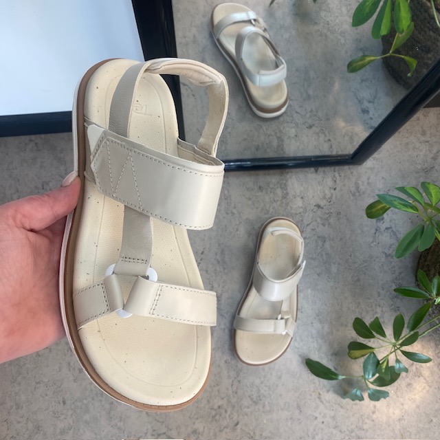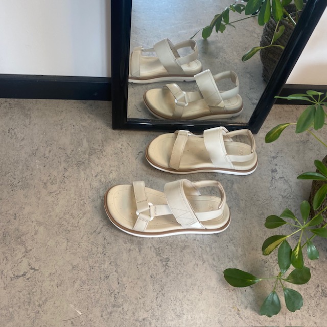 Beige lærsandal fra Teva med god støtabsorbering