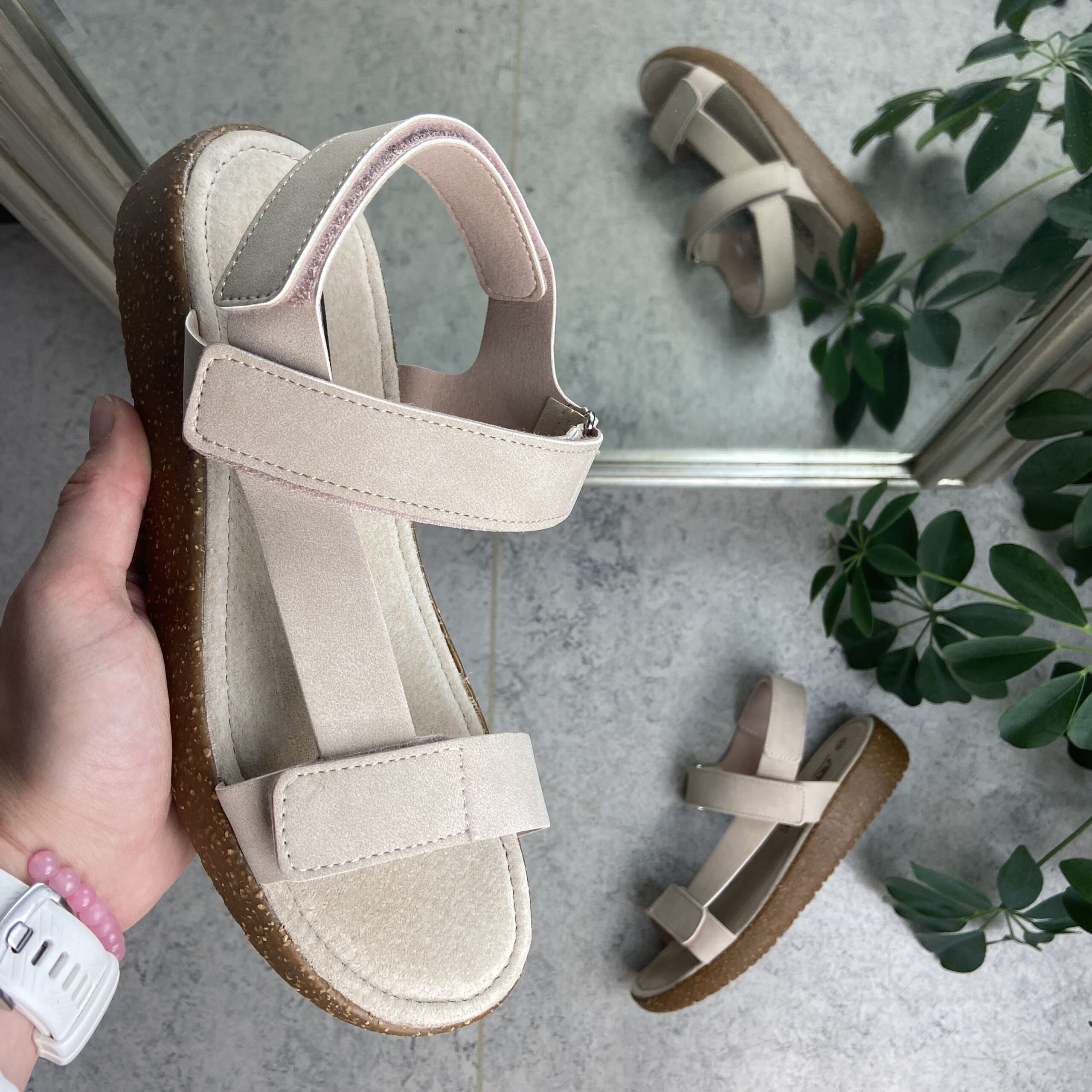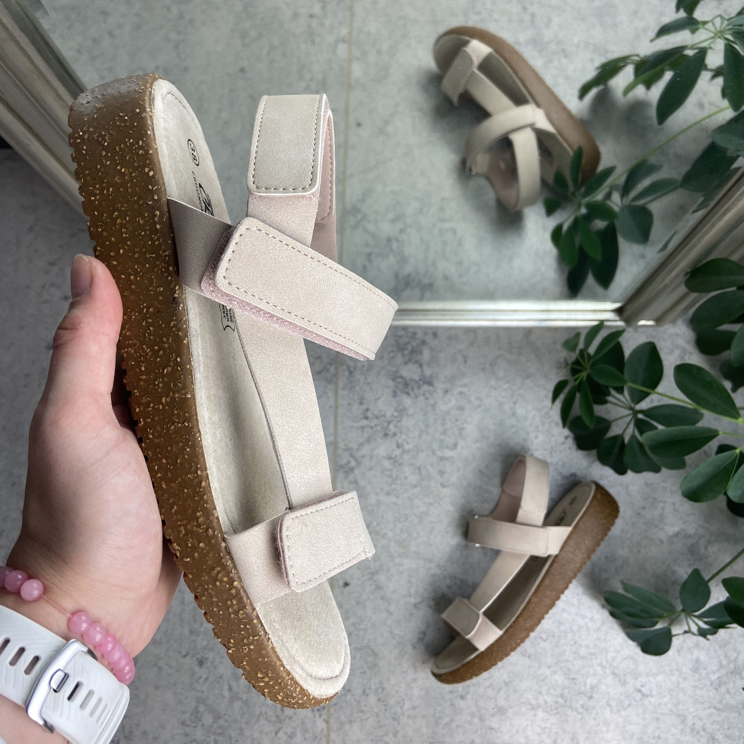 Beige sandal med ergonomisk fotseng og justerbare remmer