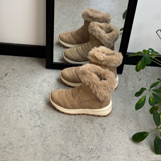 Beige vinterstøvel med mykt fôr og god støtdemping