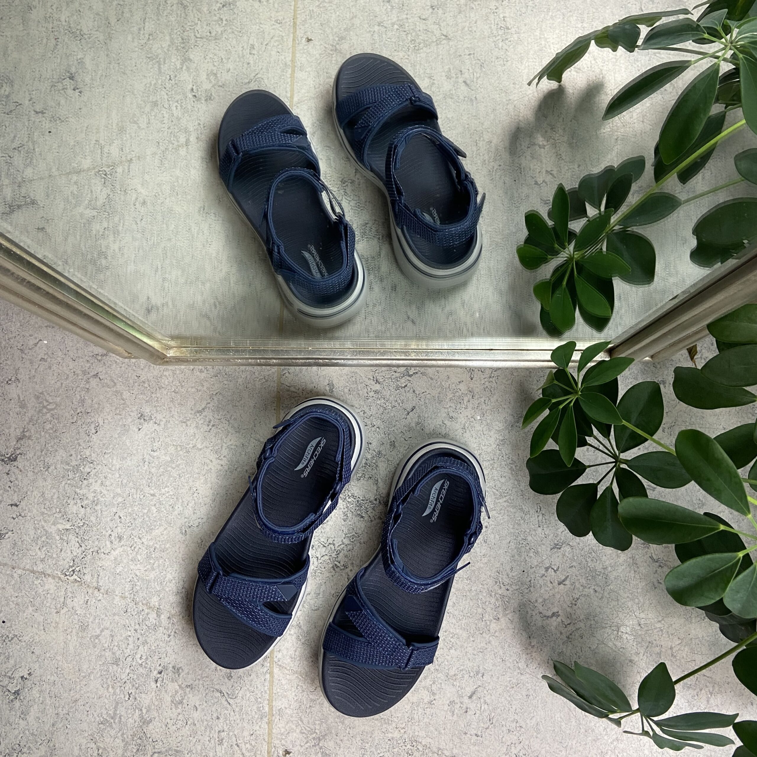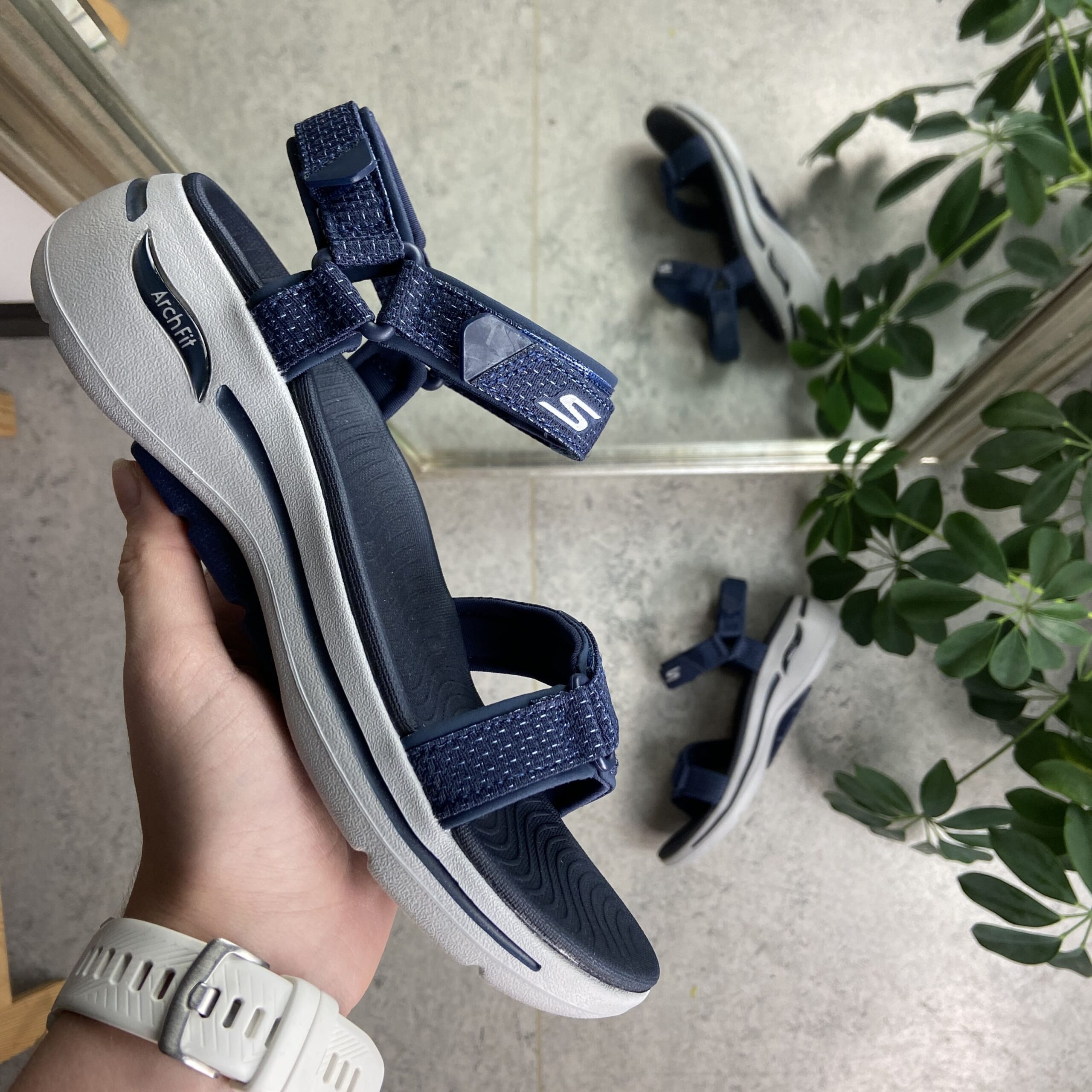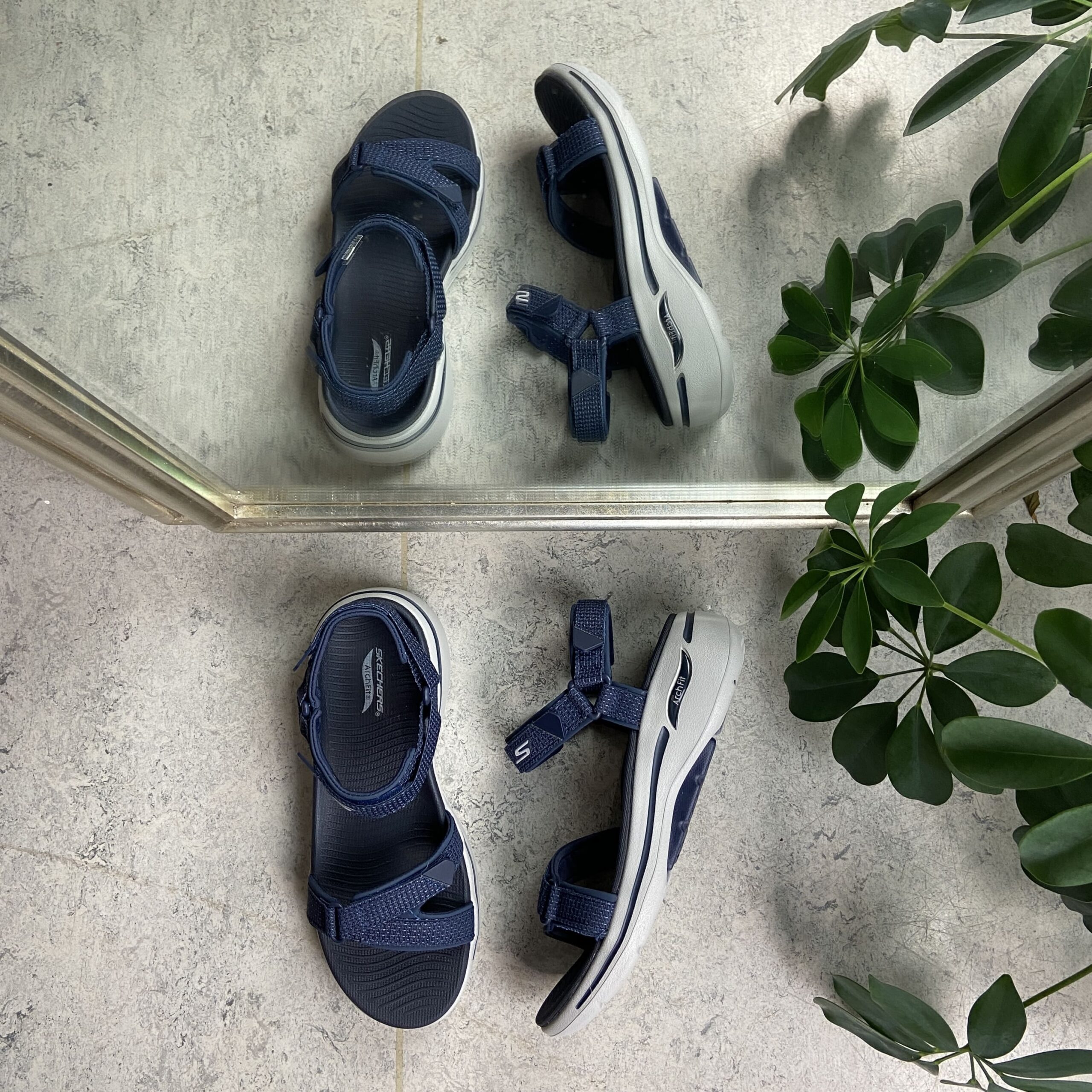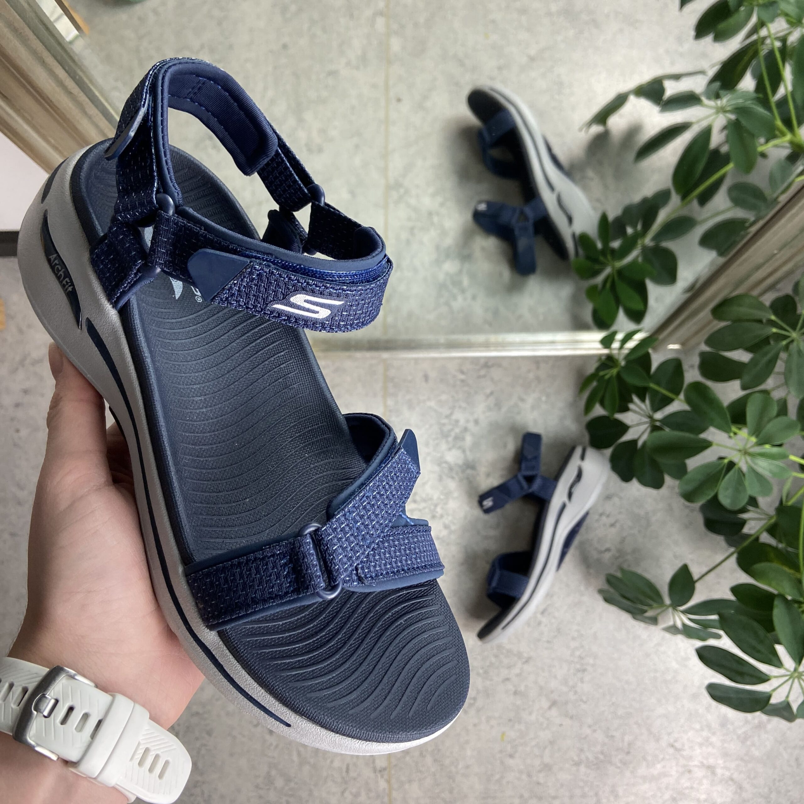 Blå sandal fra Skechers med god svangstøtte