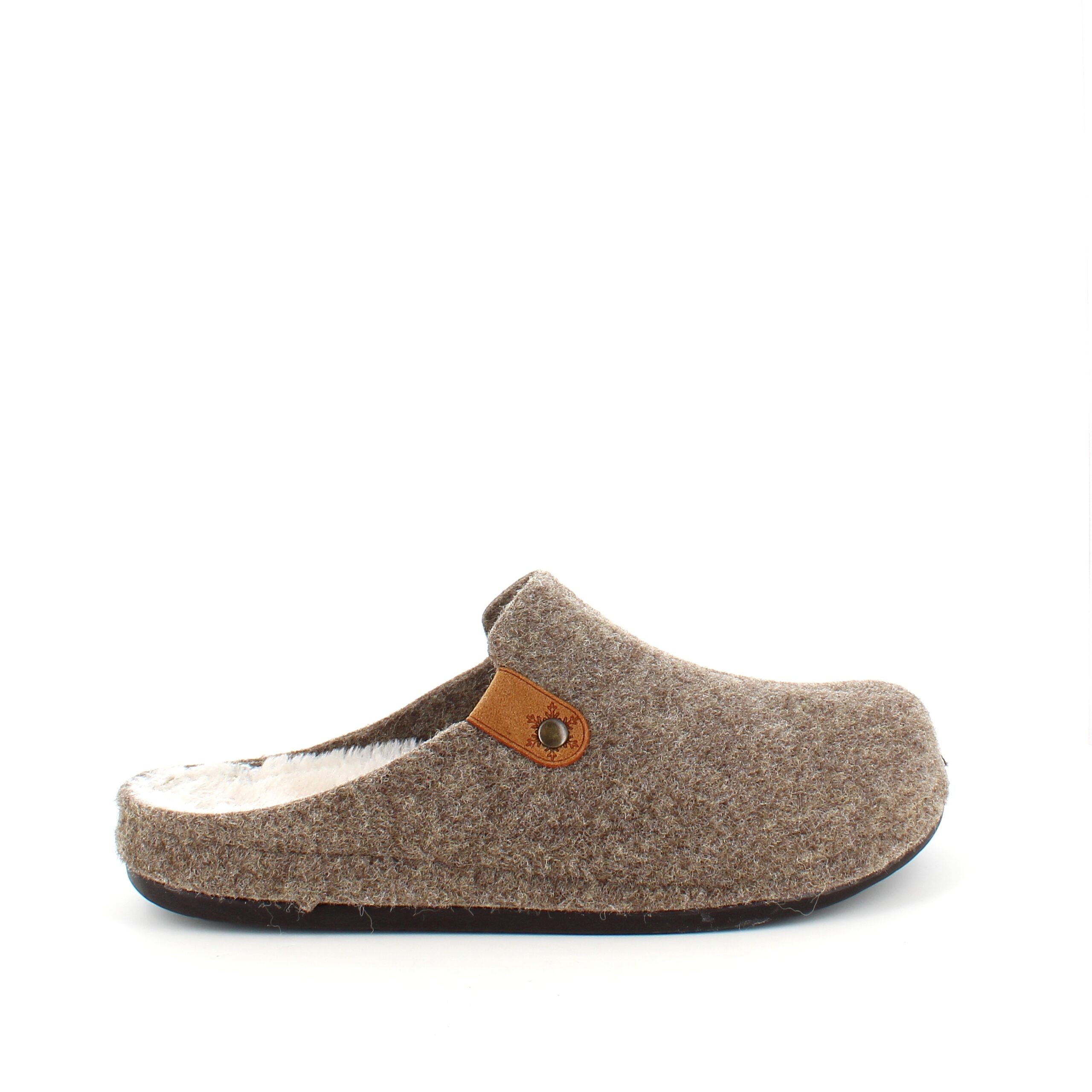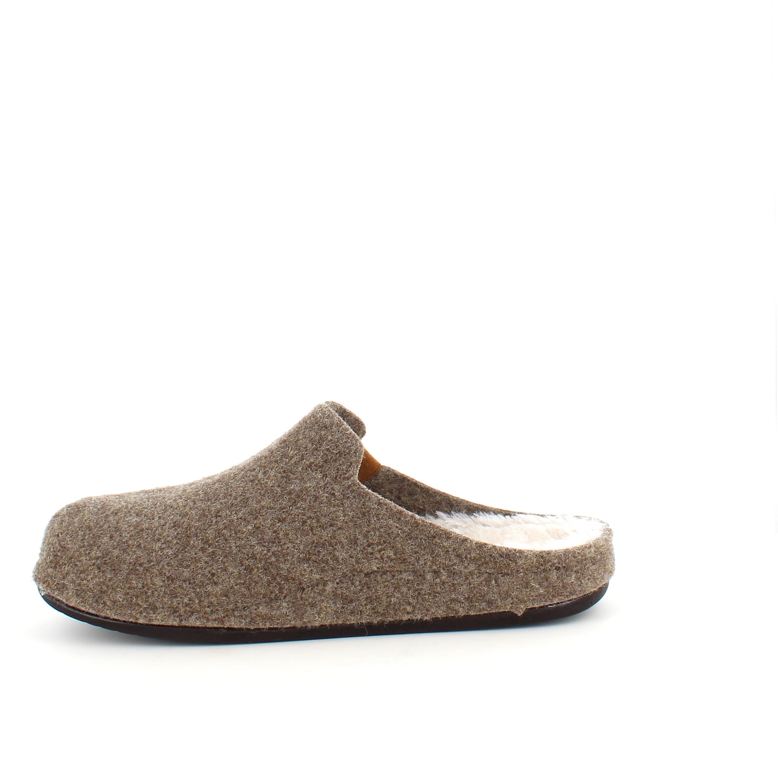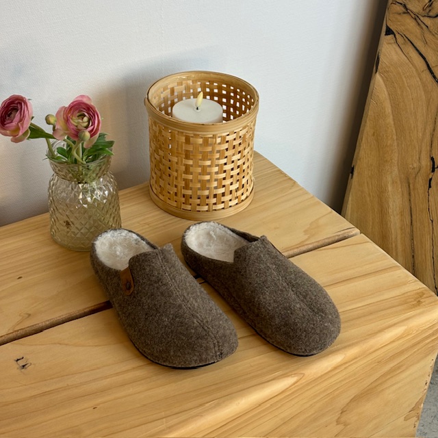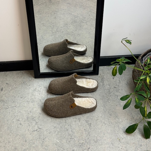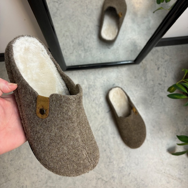 Brun filtet tøffel har en innersåle foret med fleece.
