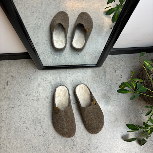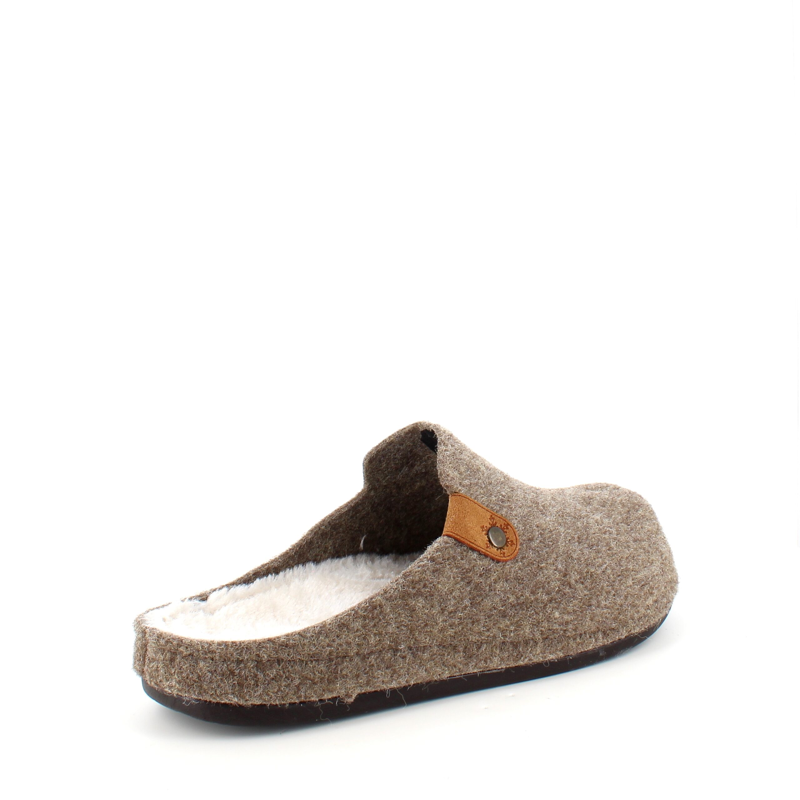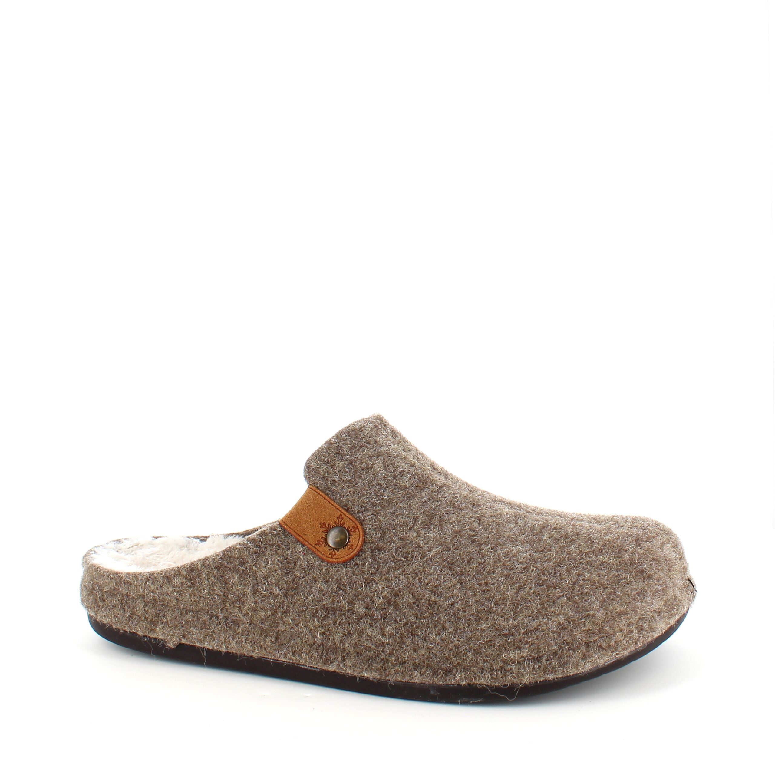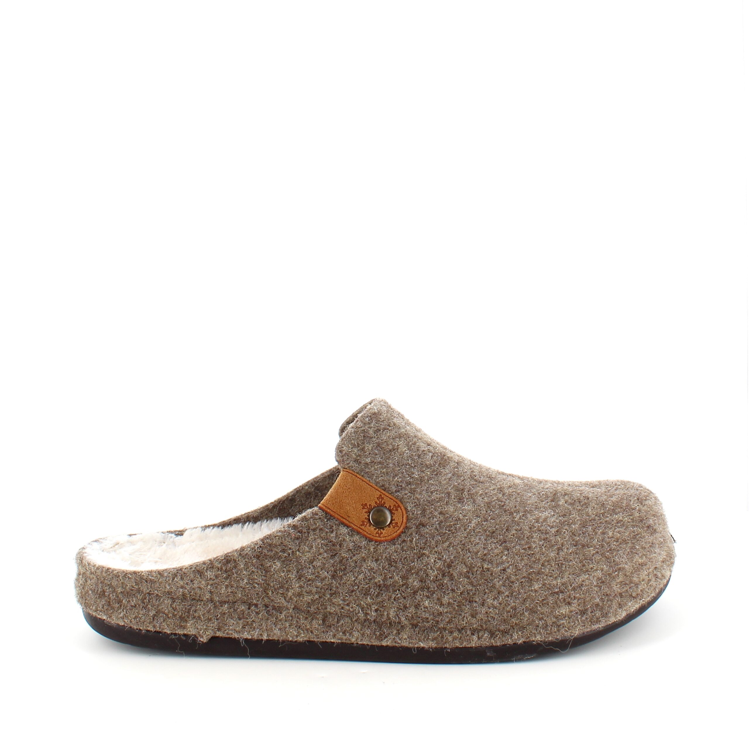 Brun filtet tøffel har en innersåle foret med fleece.