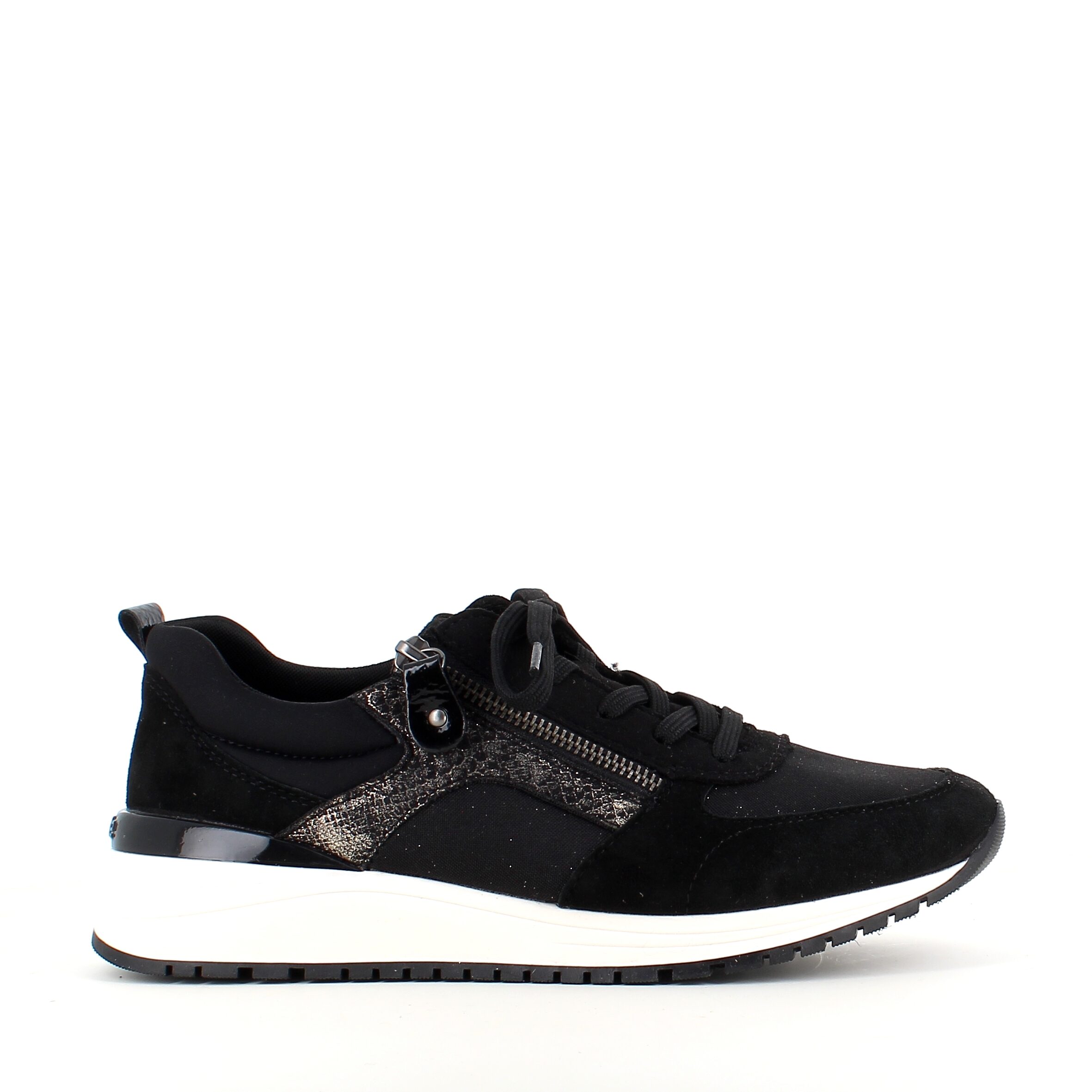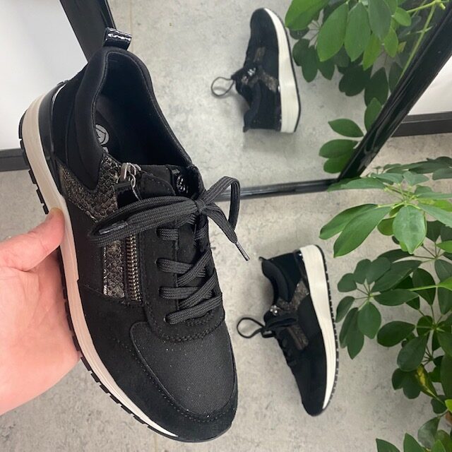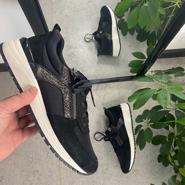 Denne sneakers har skinn på overdelen og flotte detaljer med litt glimmer, slangeprint og lakk.