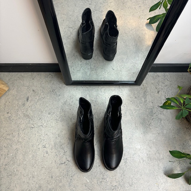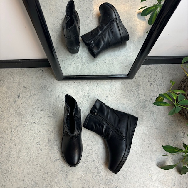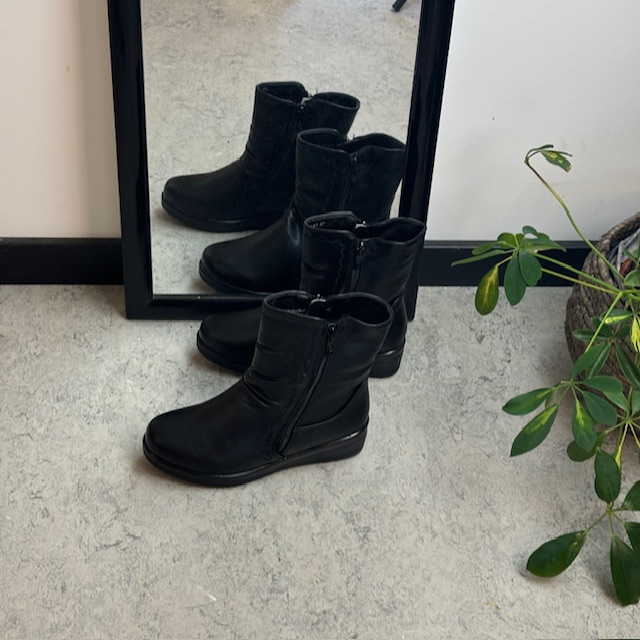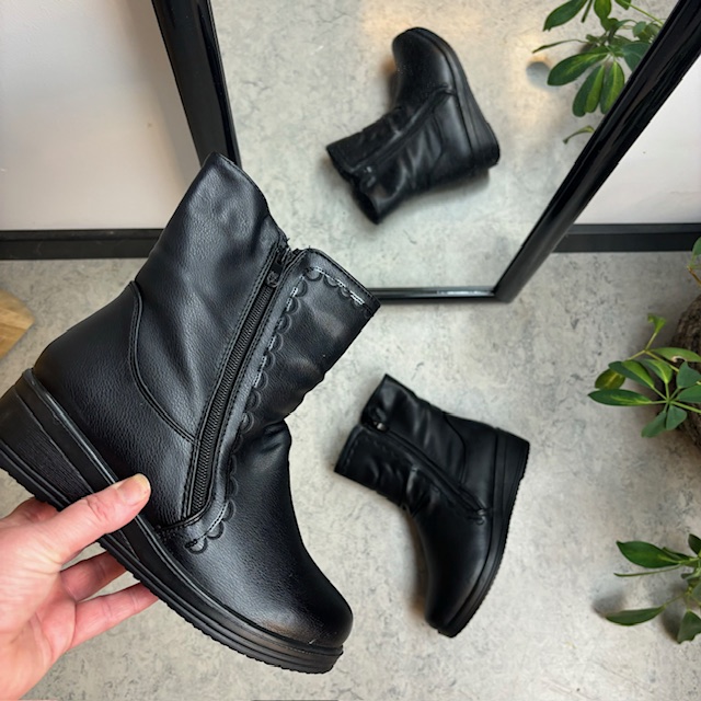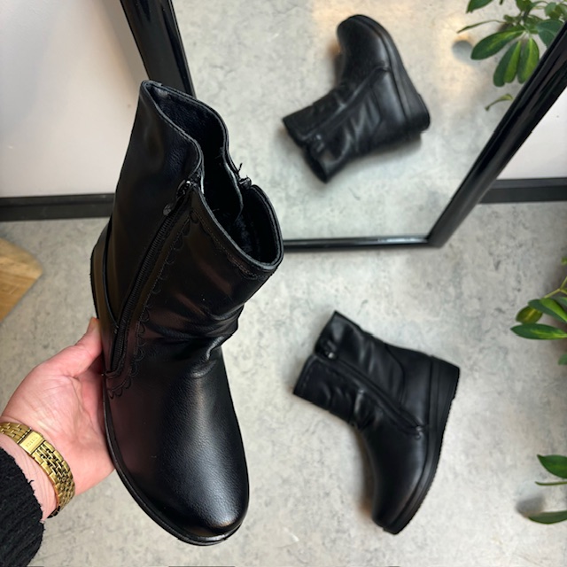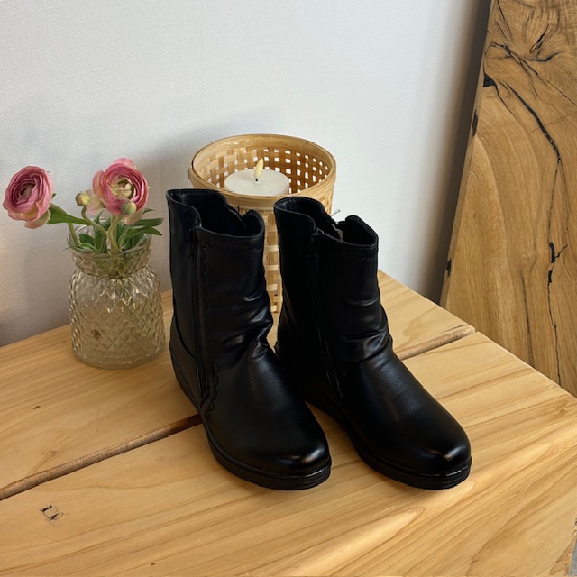 Elegant sort vinterstøvel med flotte detaljer både på fronten og ved åpningene