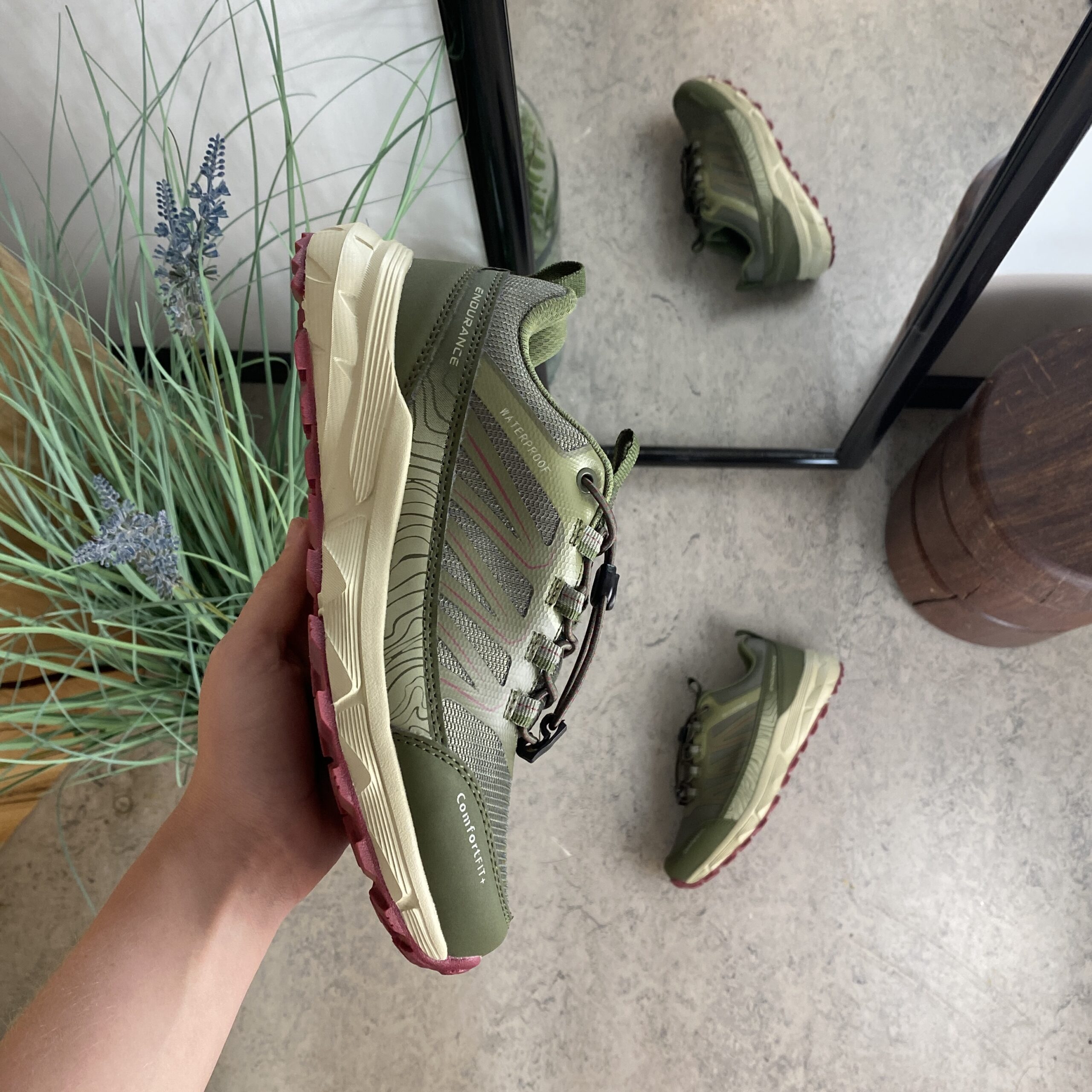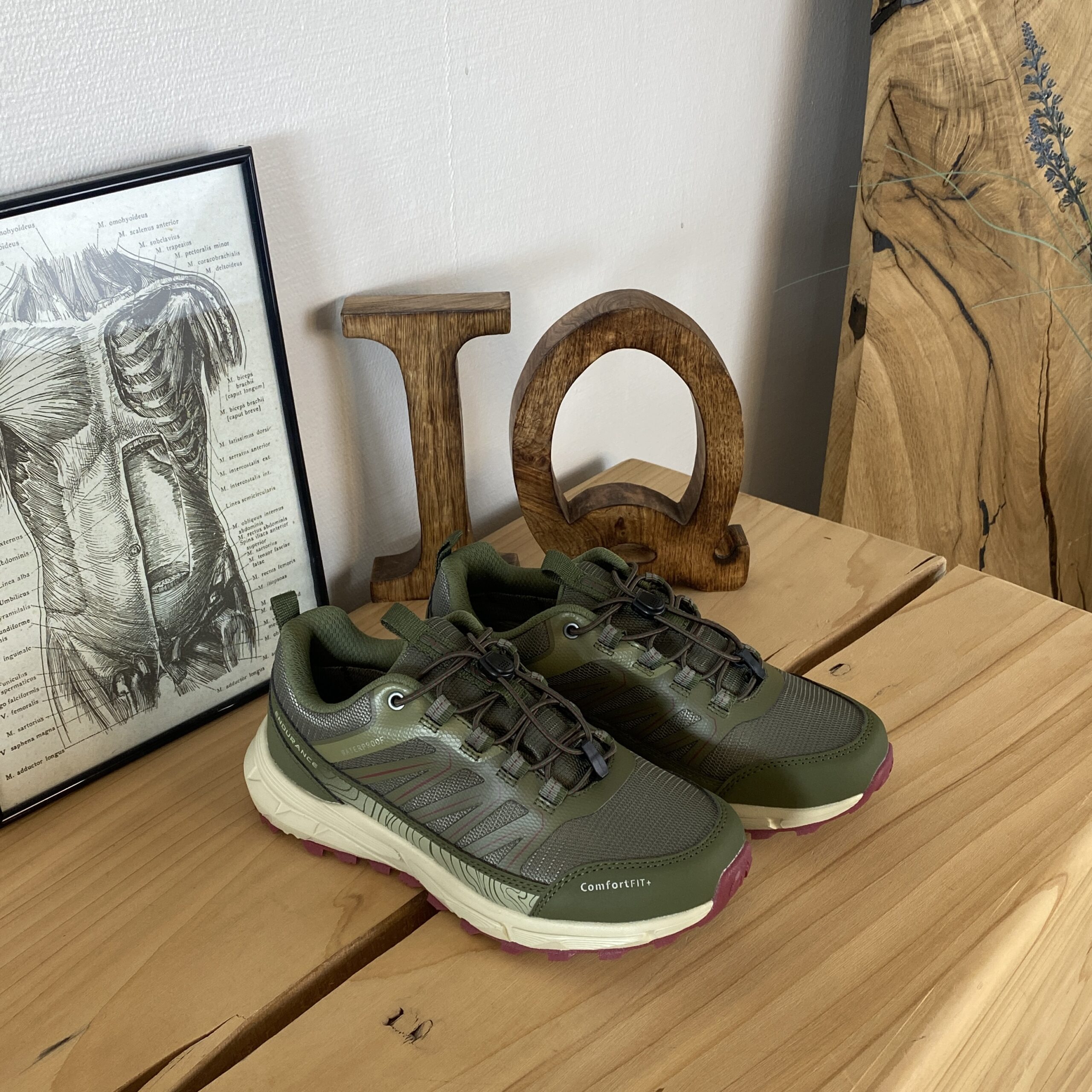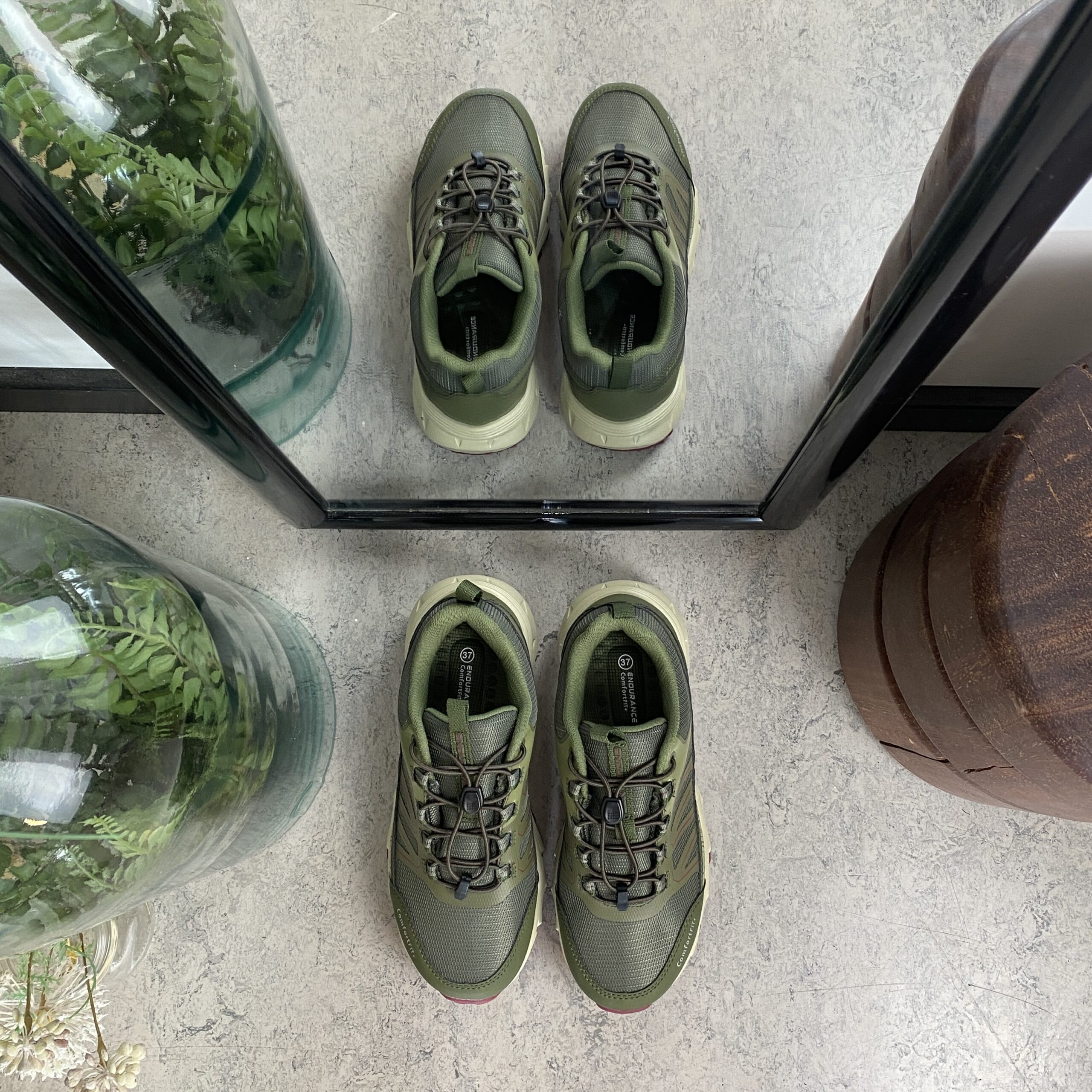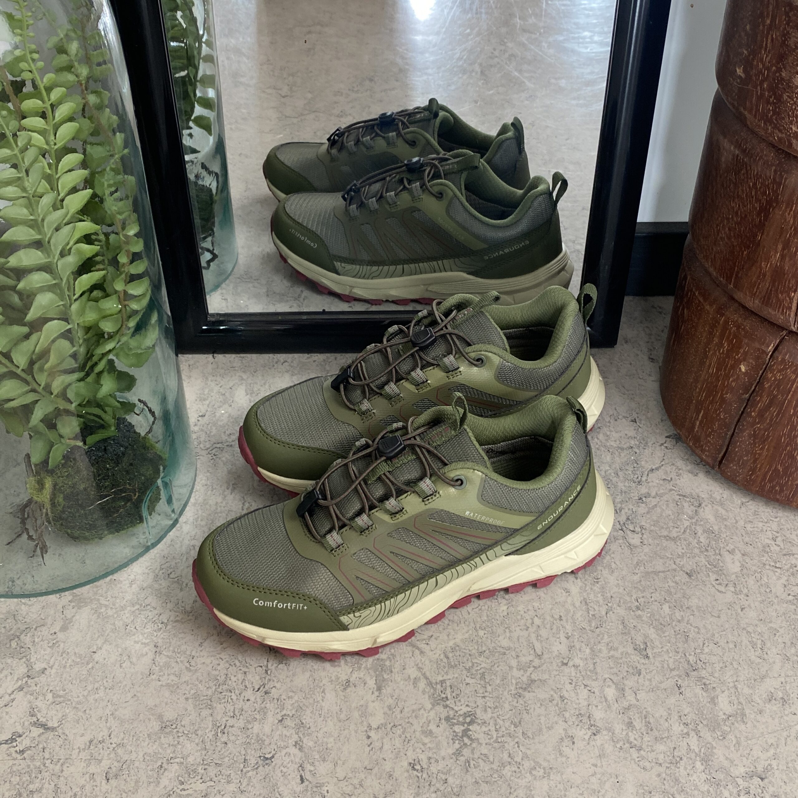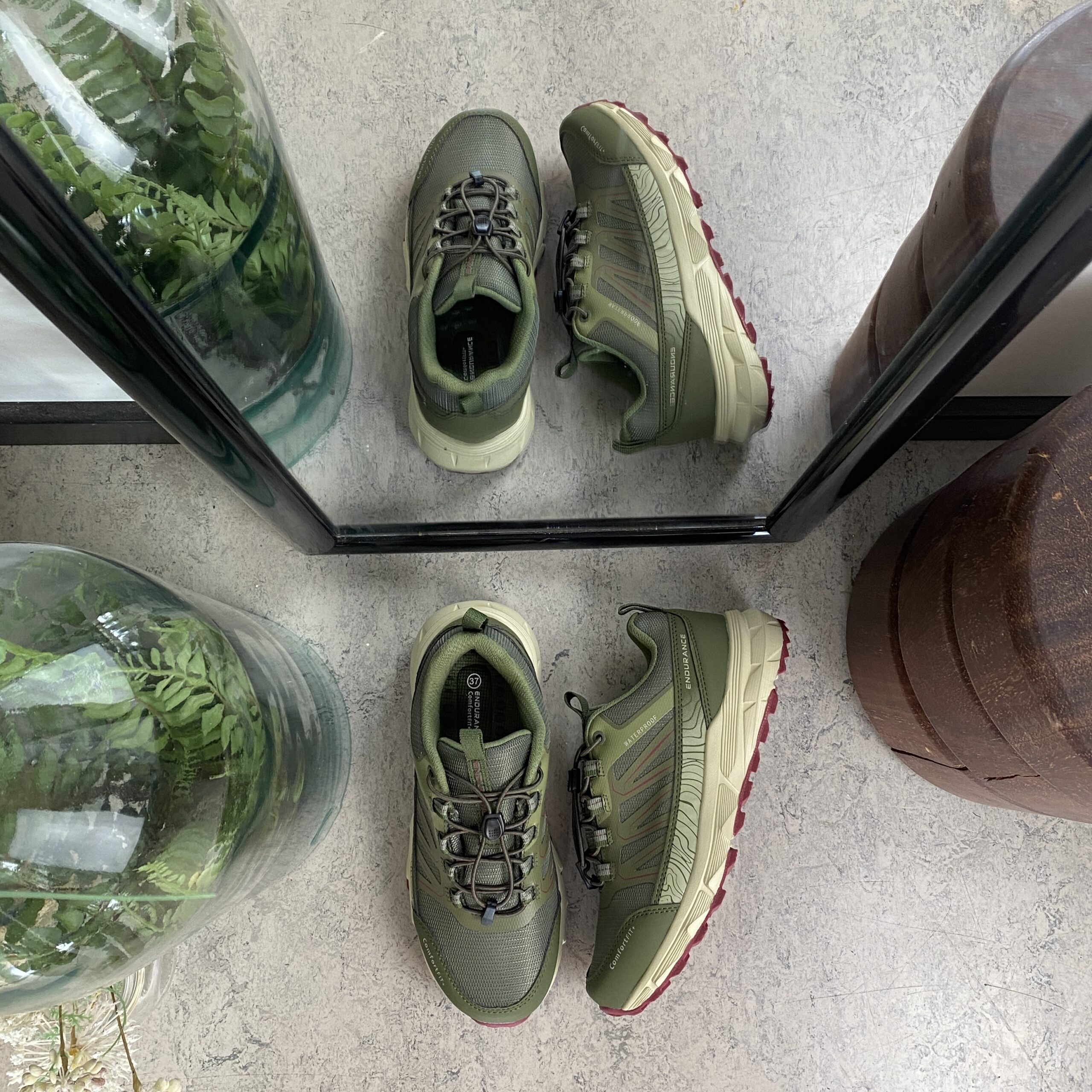 Endurance vanntette sko i grønn med støtabsorberende såle