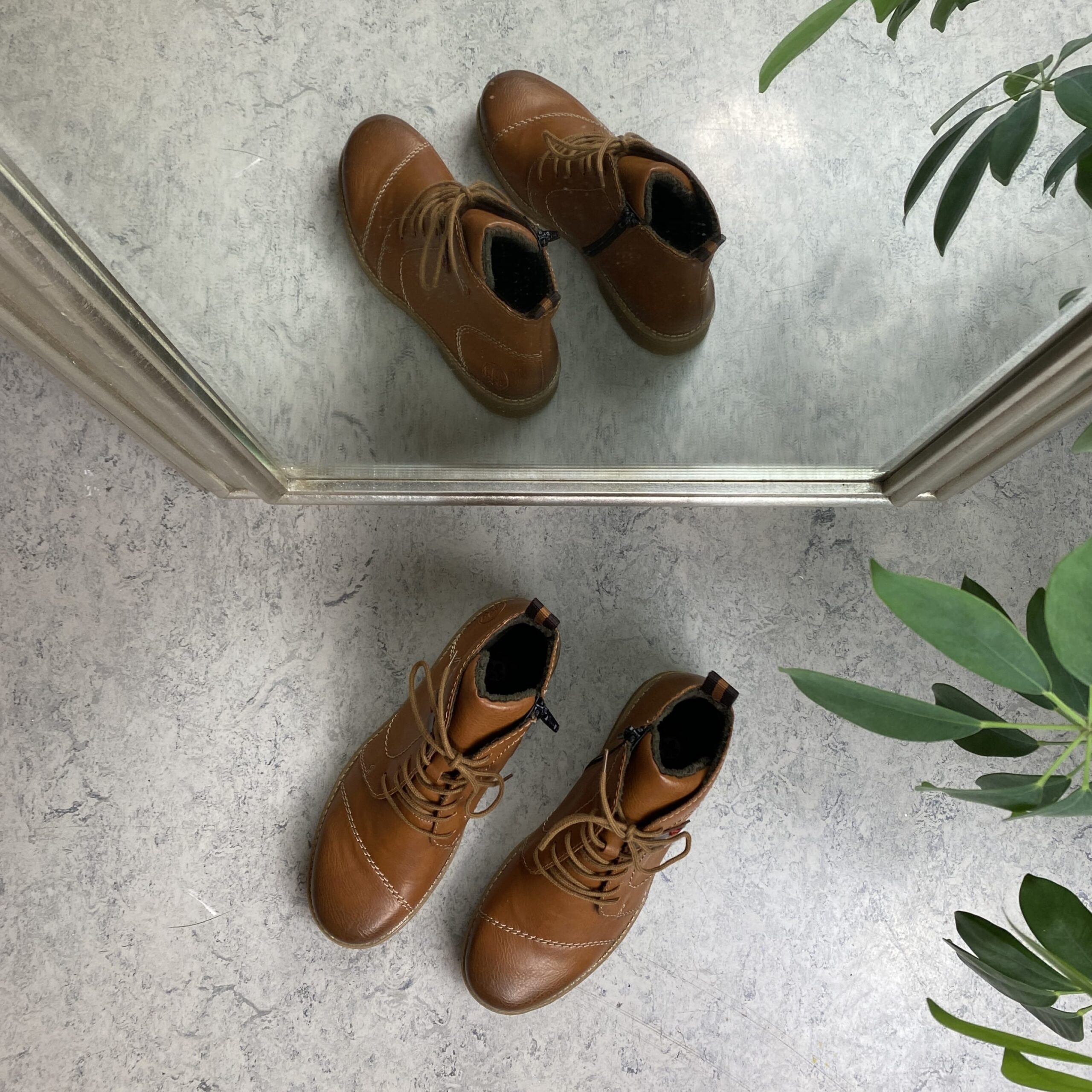 På fronten av støvelen er det en snørelukking og på innsiden en glidelås.