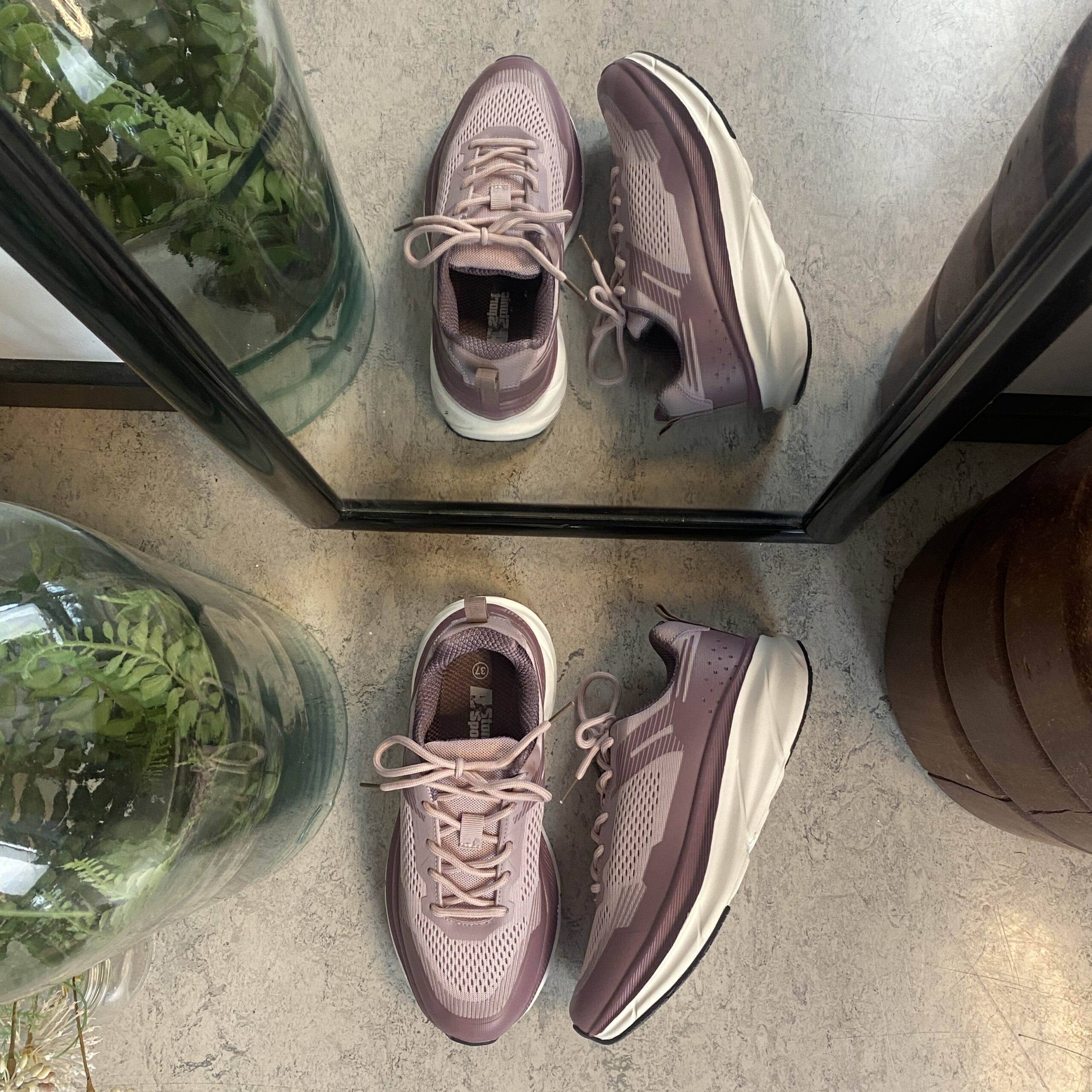 Sko med overdel i pustende lilla mesh, som holder føttene kjølige og komfortable hele dagen.