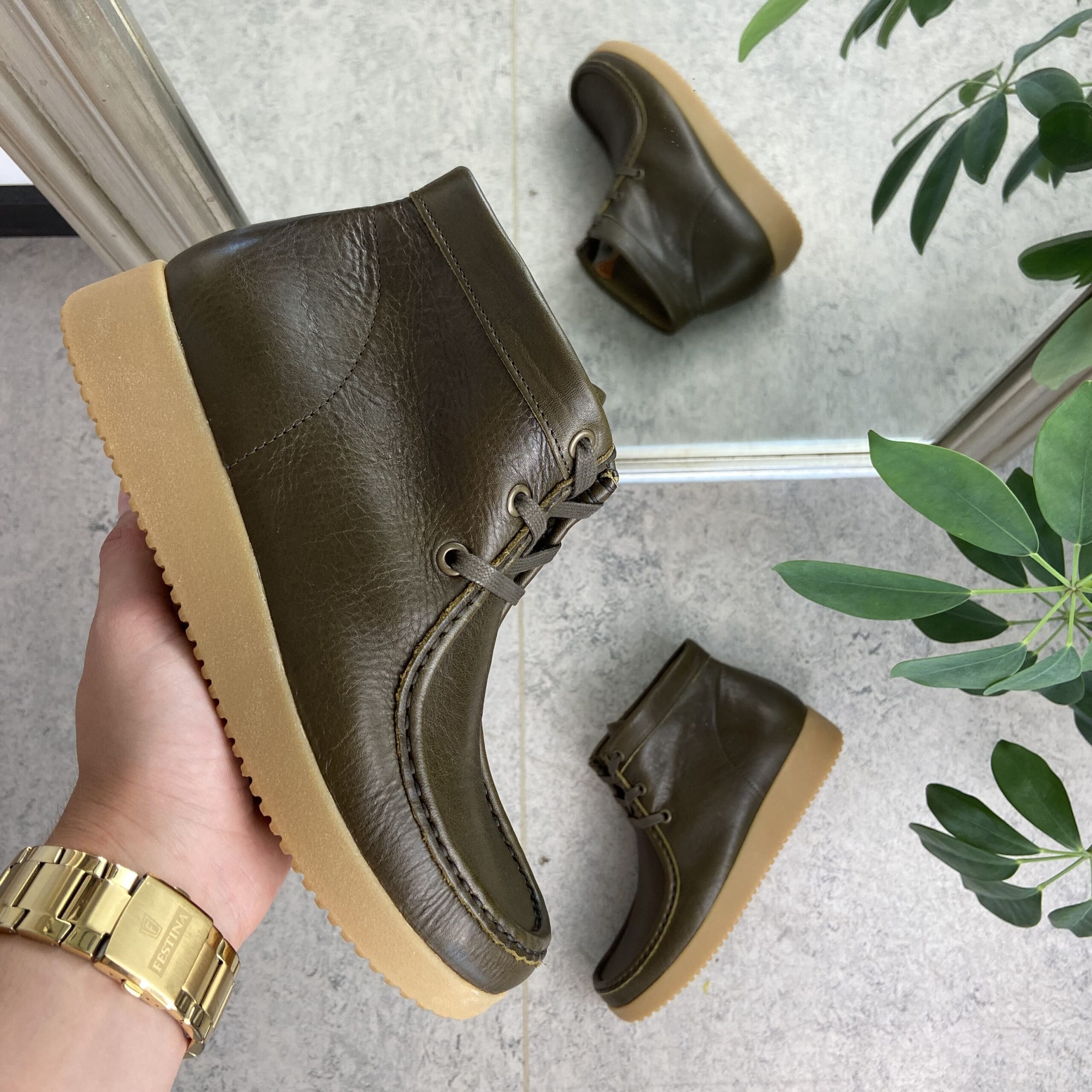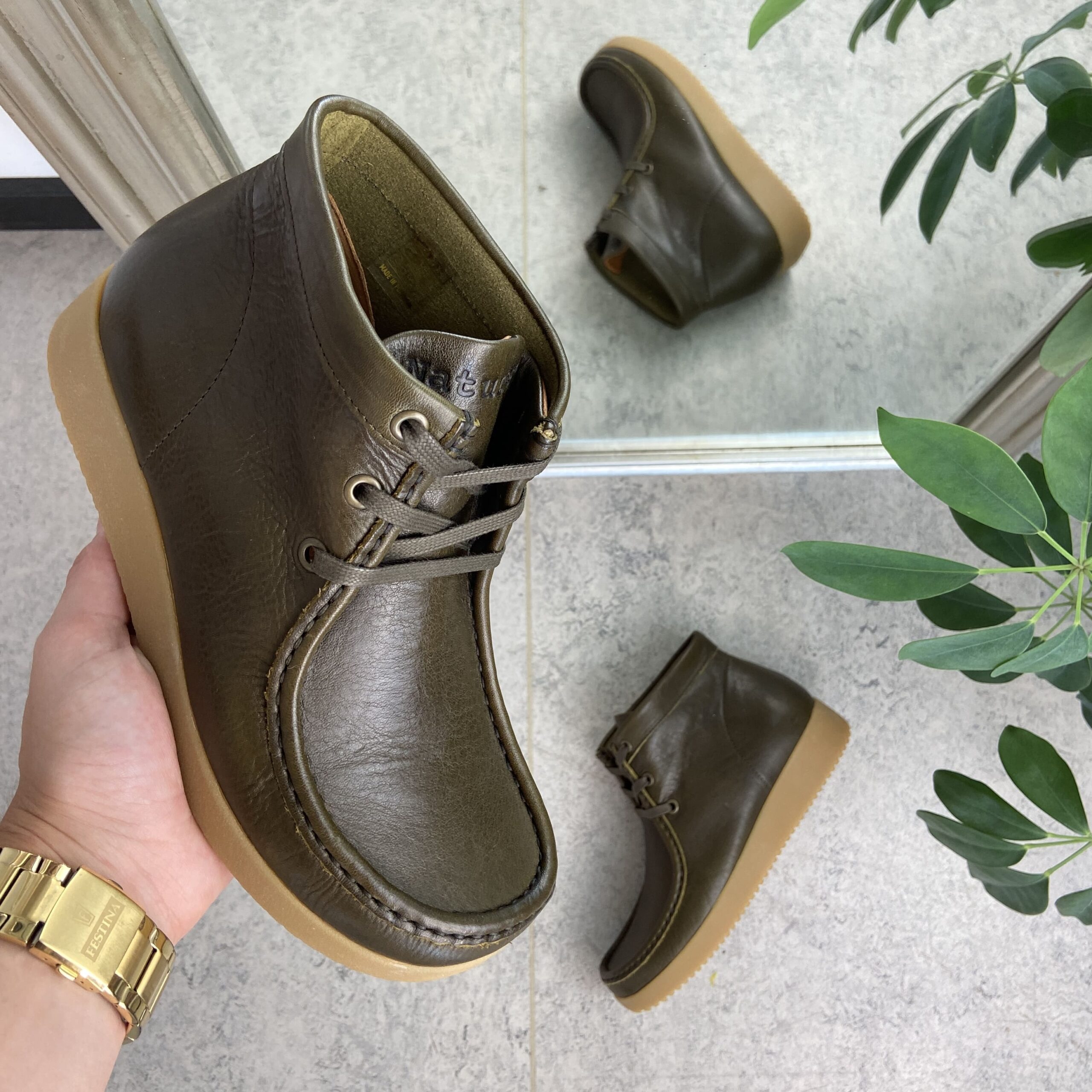 Mørk olivengrønn støvel fra Nature. Støvelen er i vegetabilsk garvet skinn som er fri for krom.