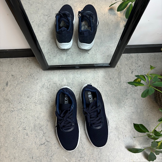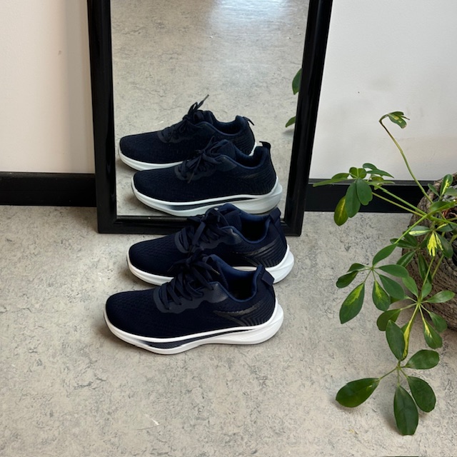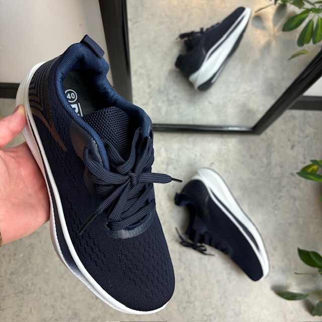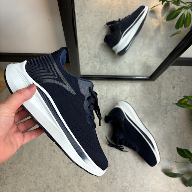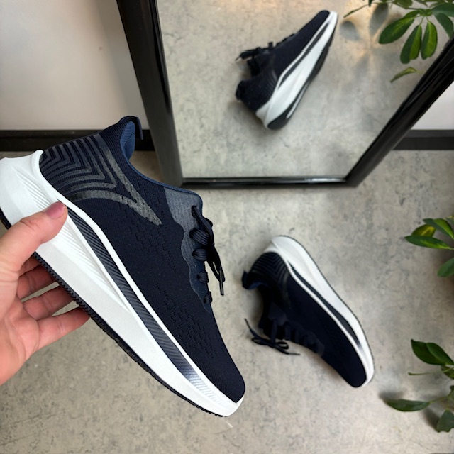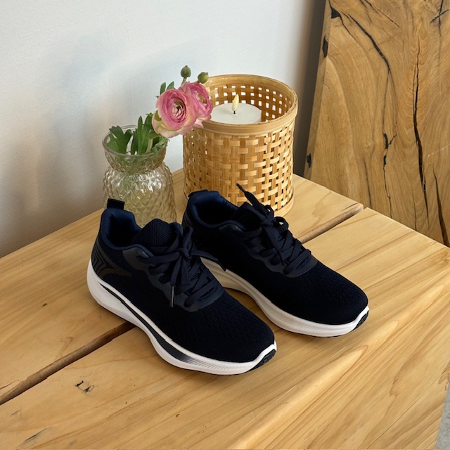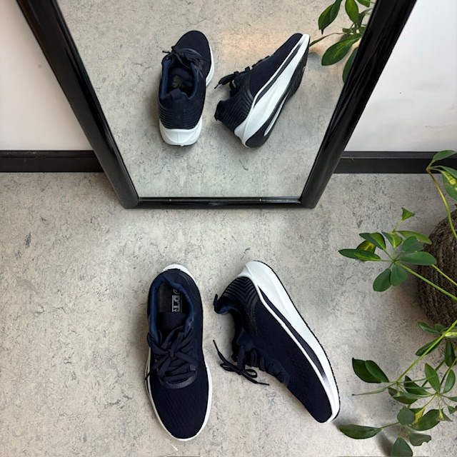 Disse mørkeblå joggeskoene tilbyr utmerket støtdemping takket være en spesialdesignet mellomsåle som er spesielt effektiv ved hælen.