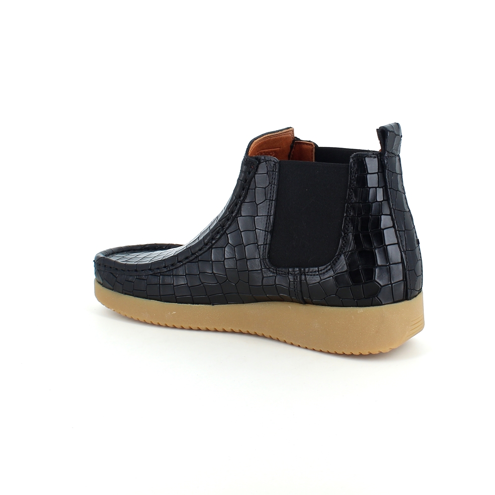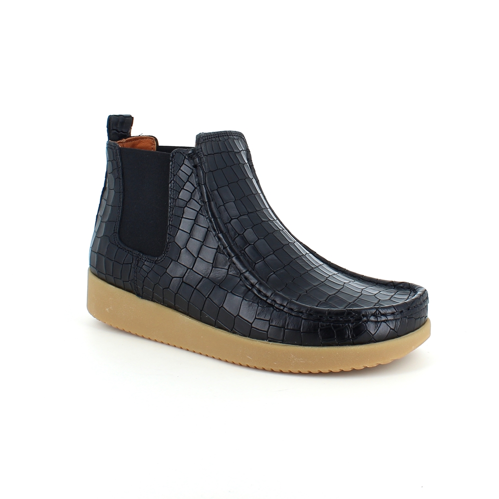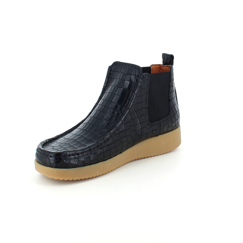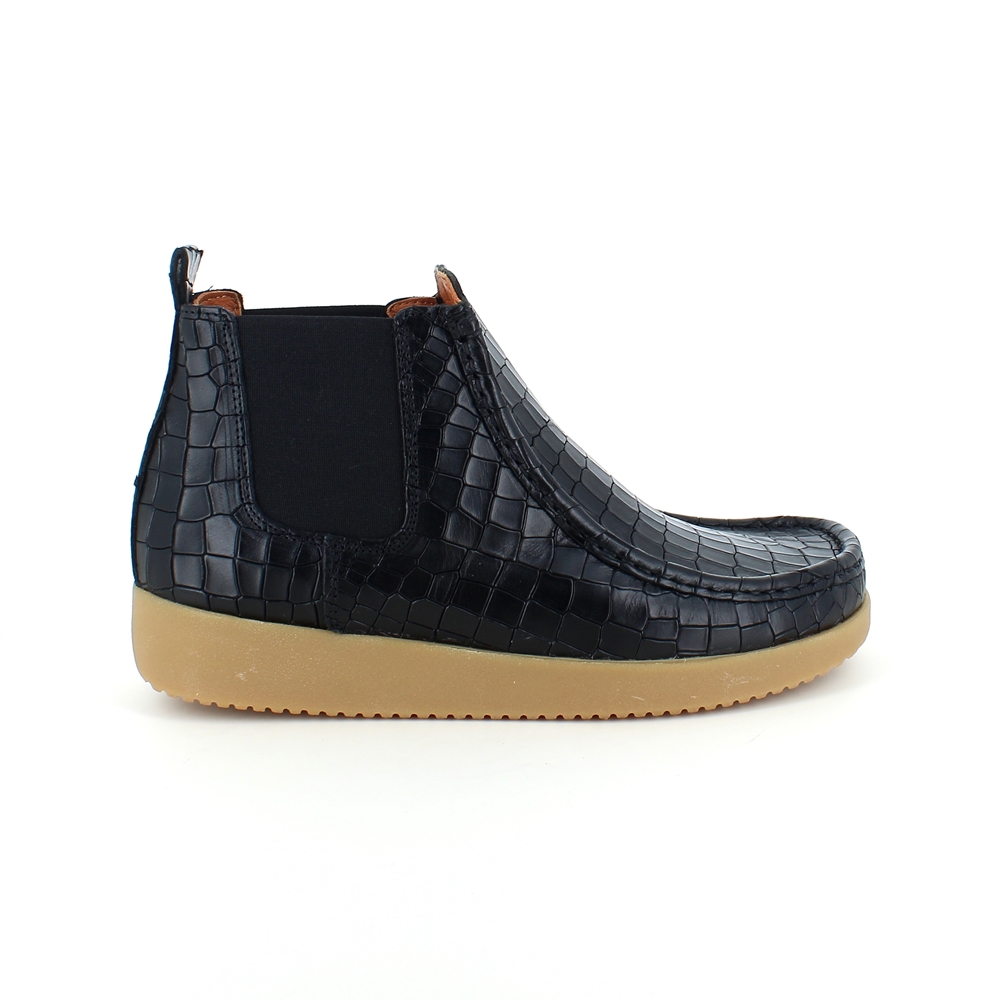Nature støvlett i svart skinn med krokodillemønster