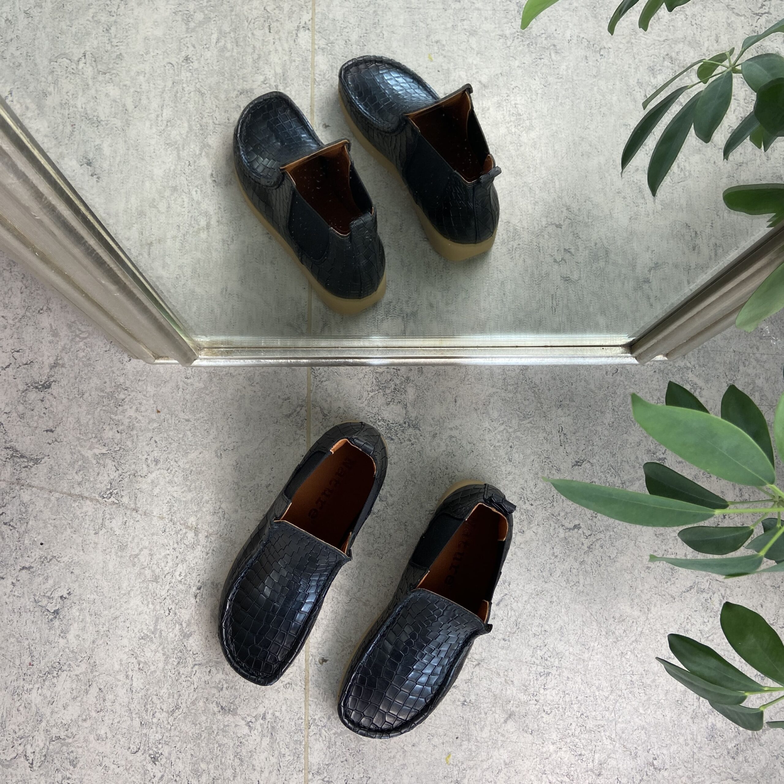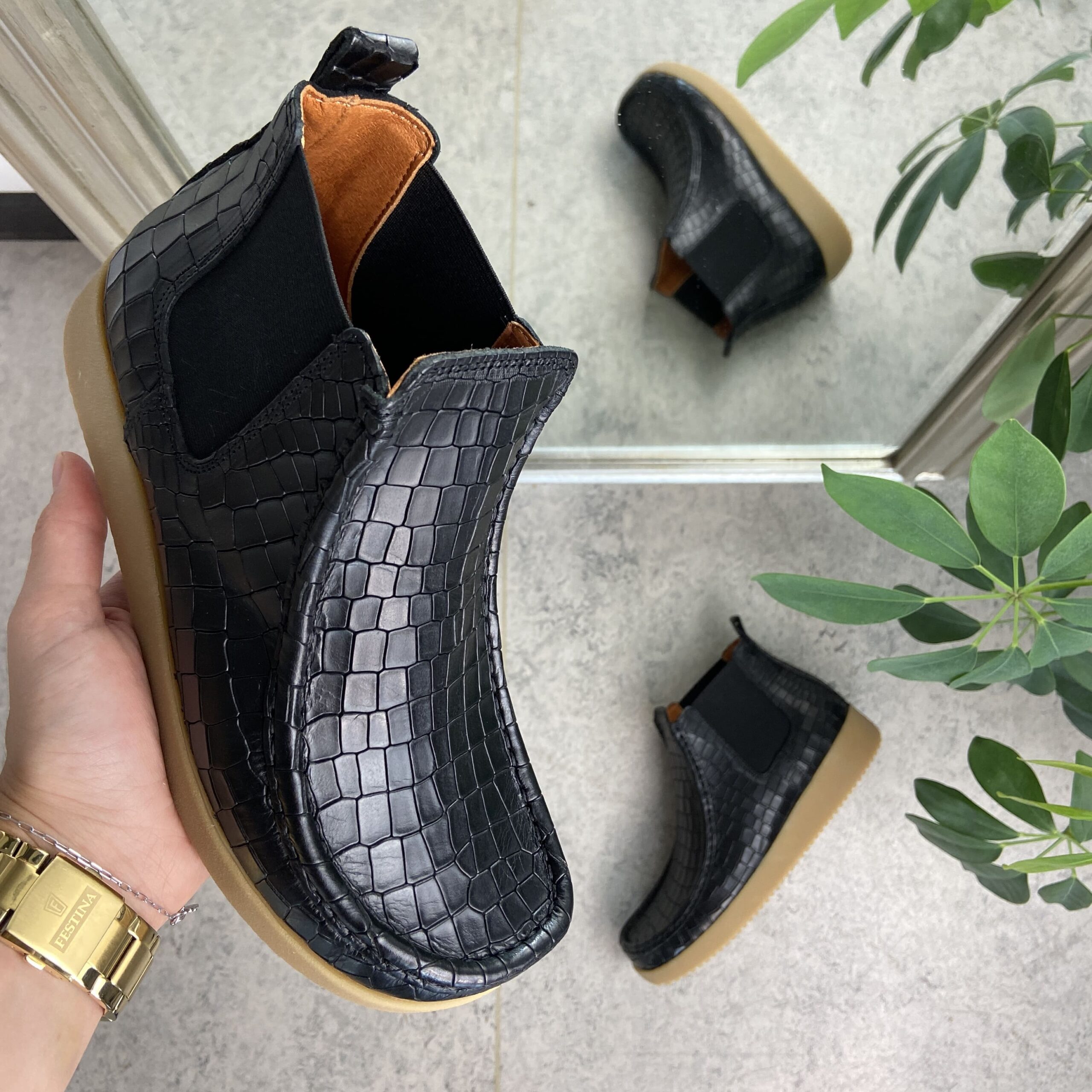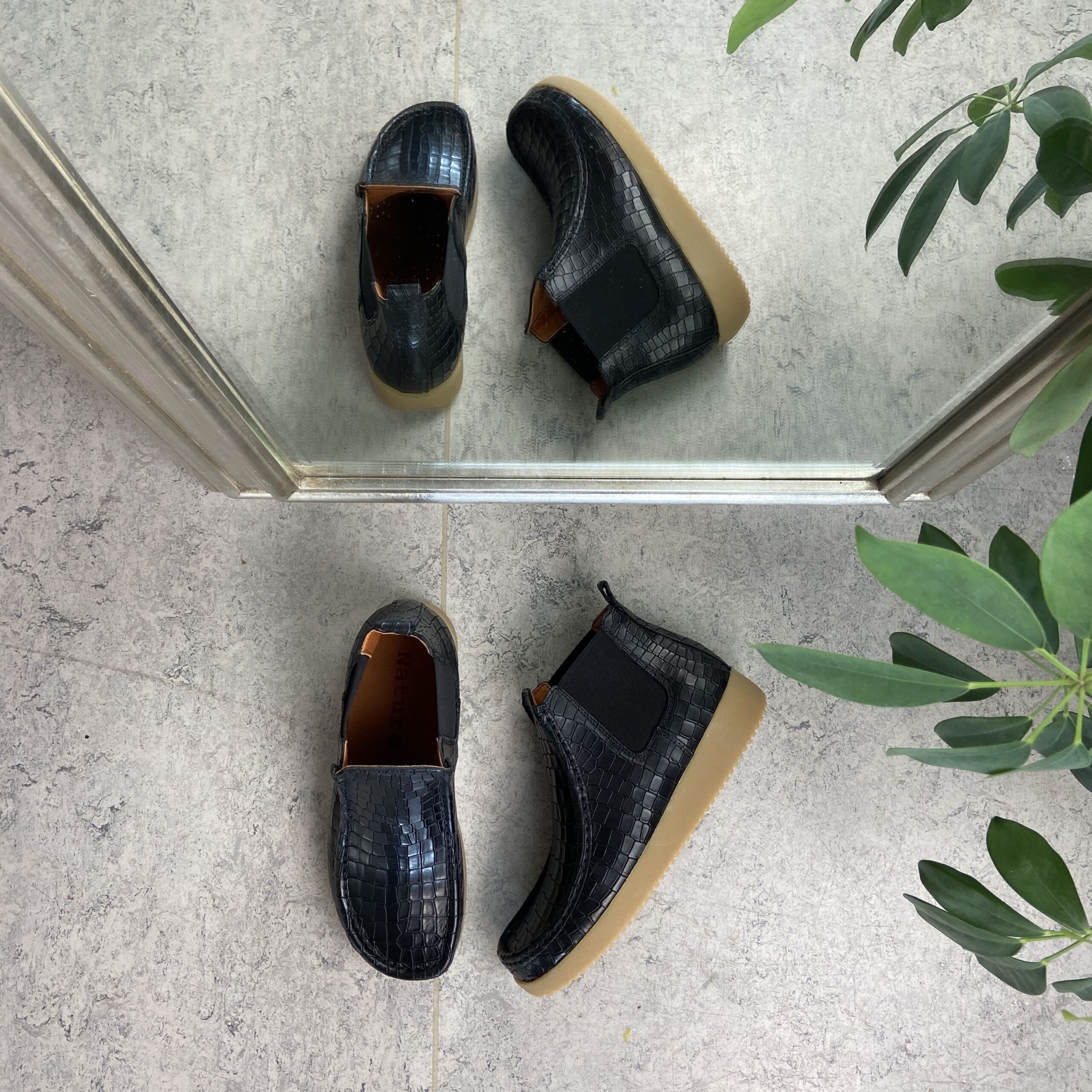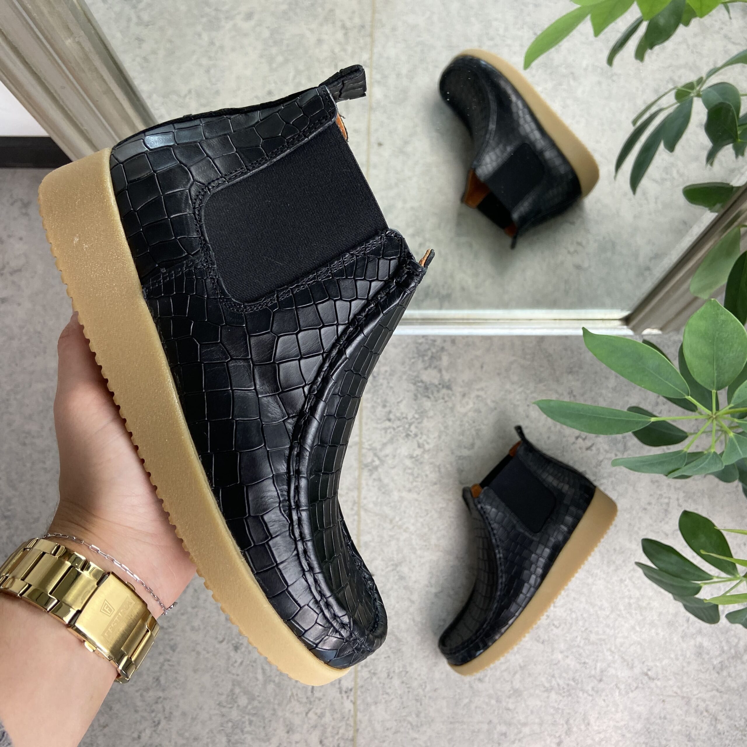 Nature støvlett i svart skinn med krokodillemønster