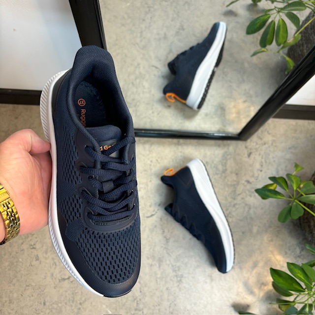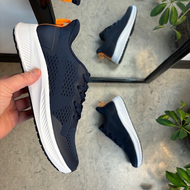 Navy fargede sko med overdel i pustende mesh.