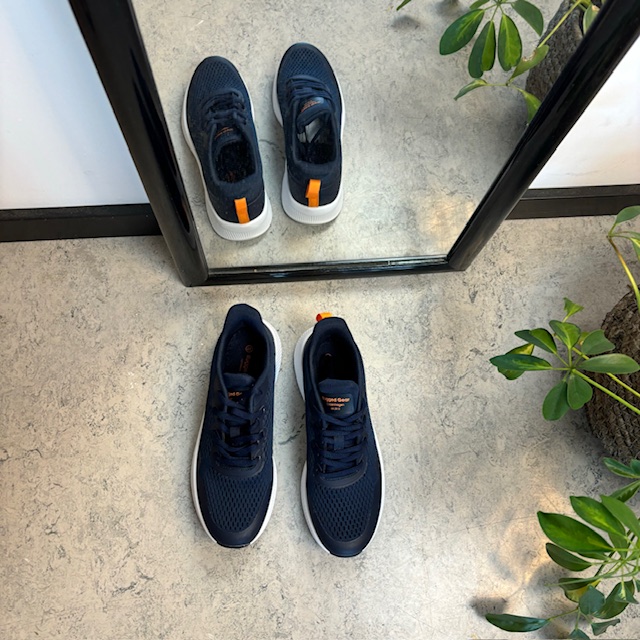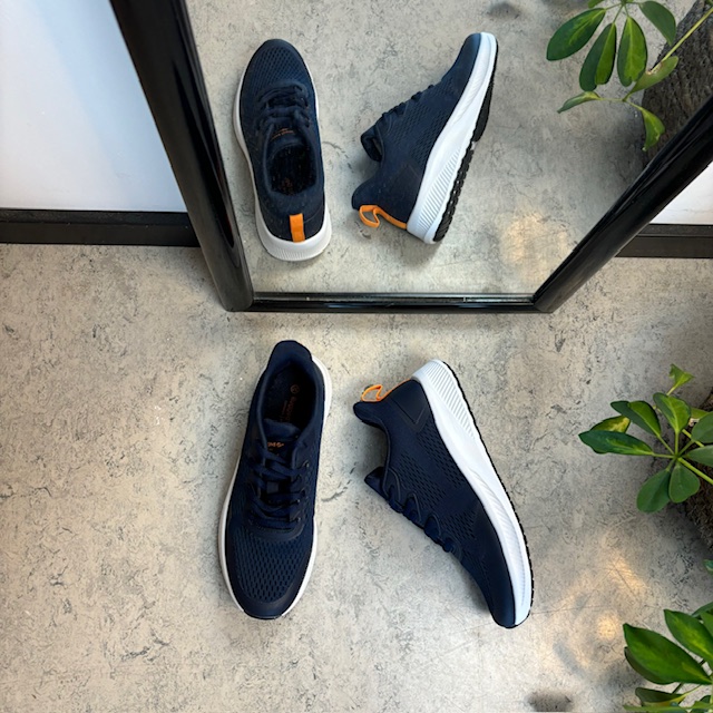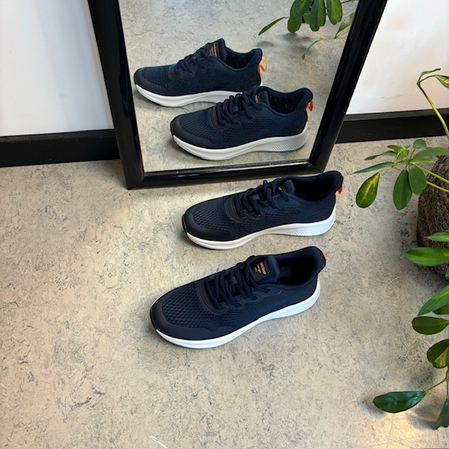 Marinefarget sko med pustende overdel og støtdemping