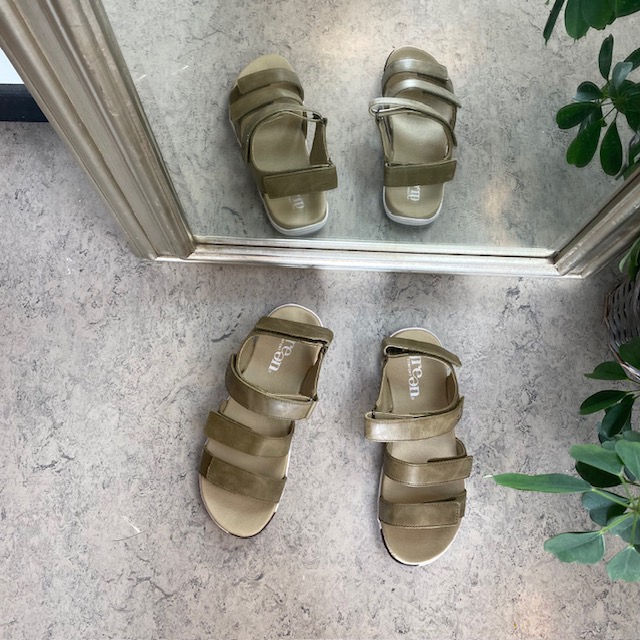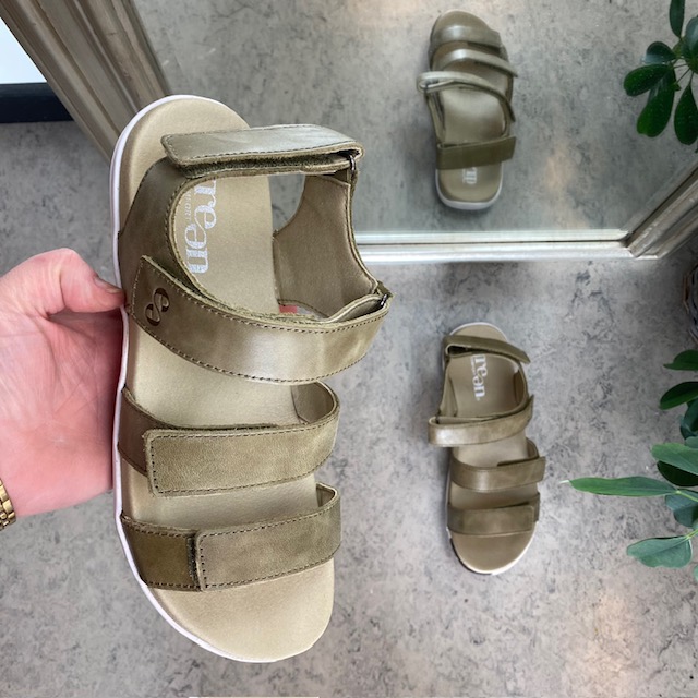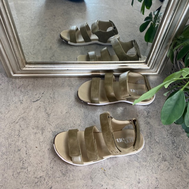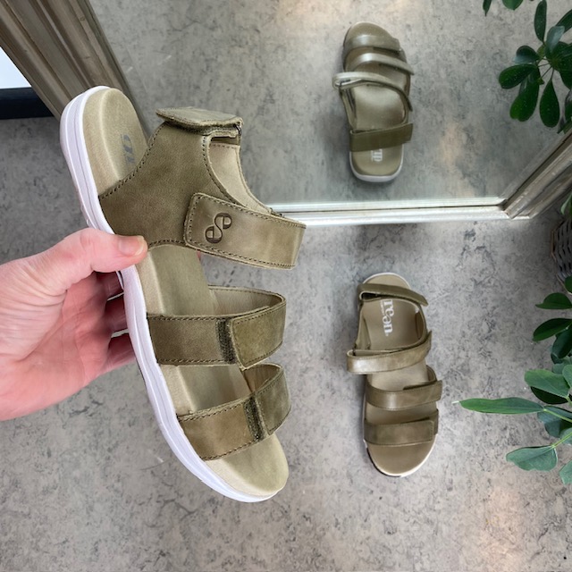 Olivenfarget lærretsandal fra Green Comfort med 6mm Energy Sole i innersålen.