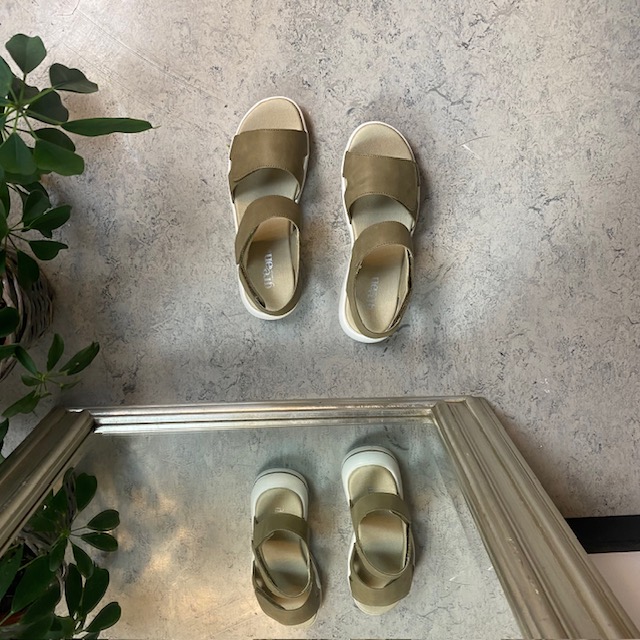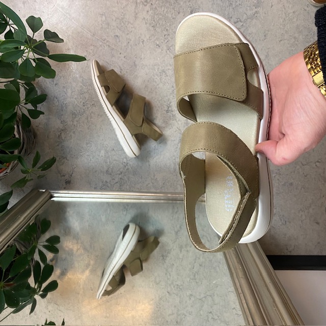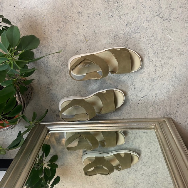 Olivenfarget skinnsandal fra Green Comfort