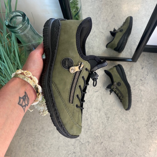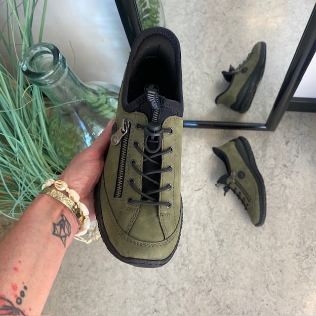 Olivengrønn Rieker slip-on sneakers til damer tilbyr en perfekt kombinasjon av stil og funksjonalitet.