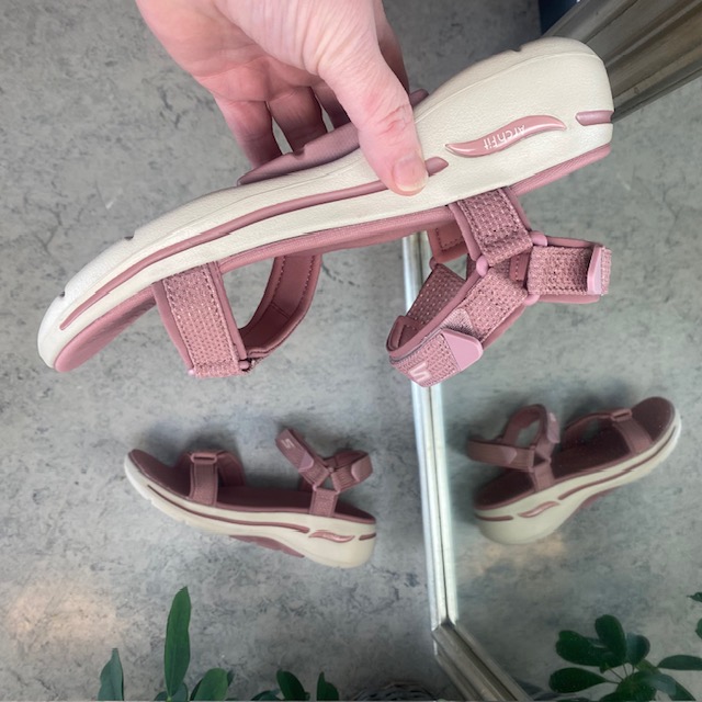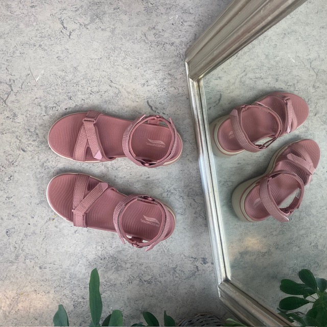 Flott rosa sandal fra Skechers med flotte detaljer i remmene.