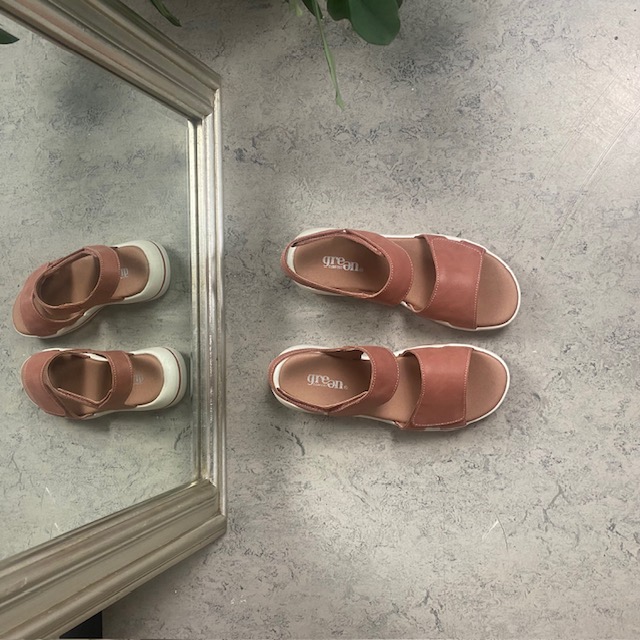 Sandalen er 2 cm forhøyet i hælen, noe som gir et mer elegant utseende.