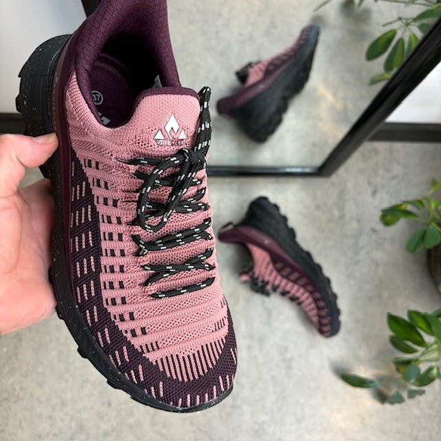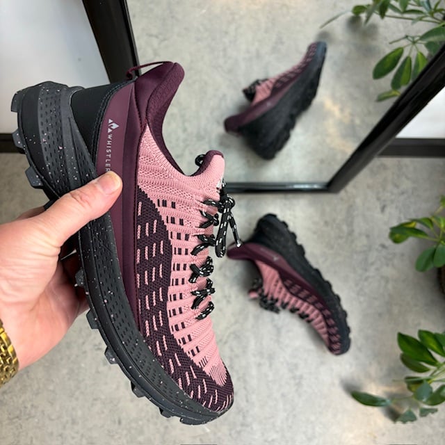 Disse slip-in sko fra Whistler har en pustende, strikket overdel i rosa og lilla.