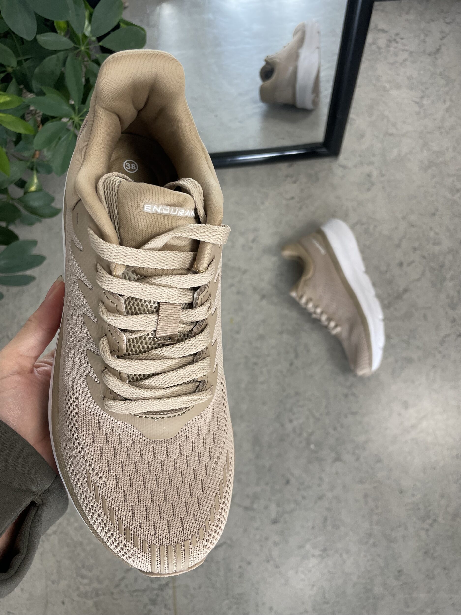 Denne sko har en overdel af mesh, som gør den åndbar.