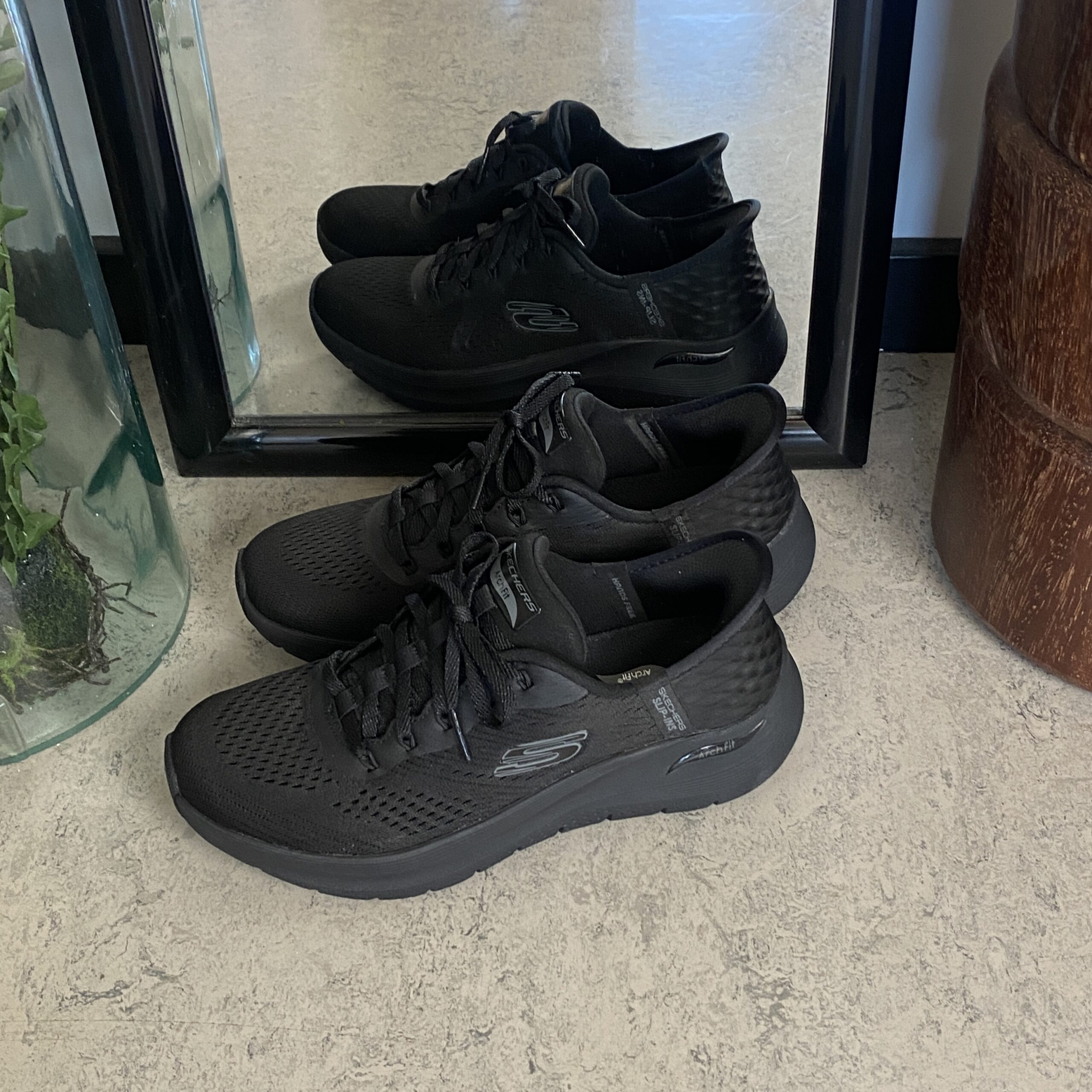 Den eksklusive Heel Pillow holder foten din sikkert på plass, mens Skechers Arch Fit innersålen med innebygd svangstøtte gir ekstra støtte.
