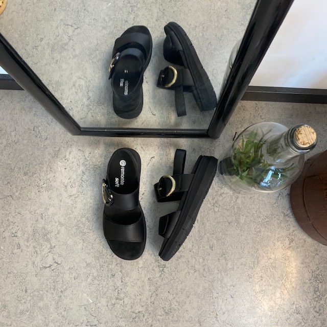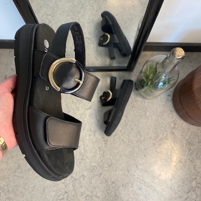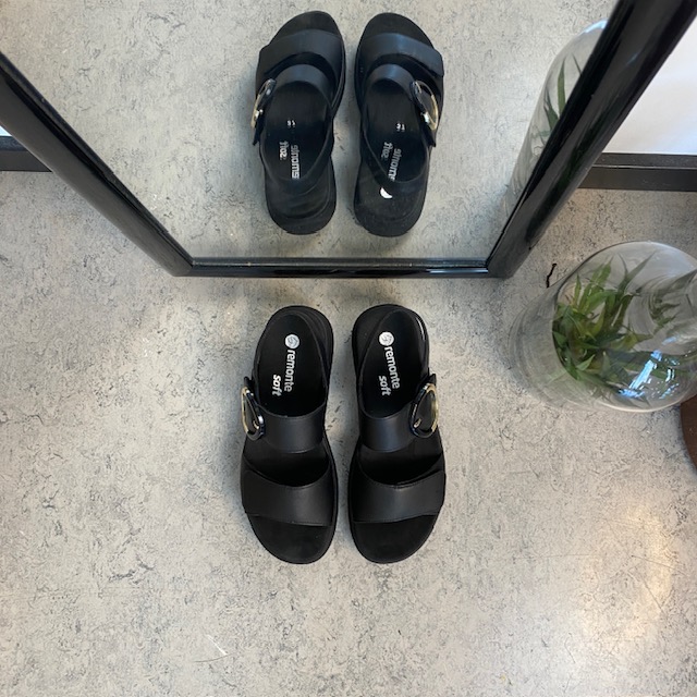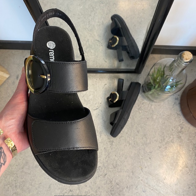 Svart Remonte skinnsandal med uttakbar såle