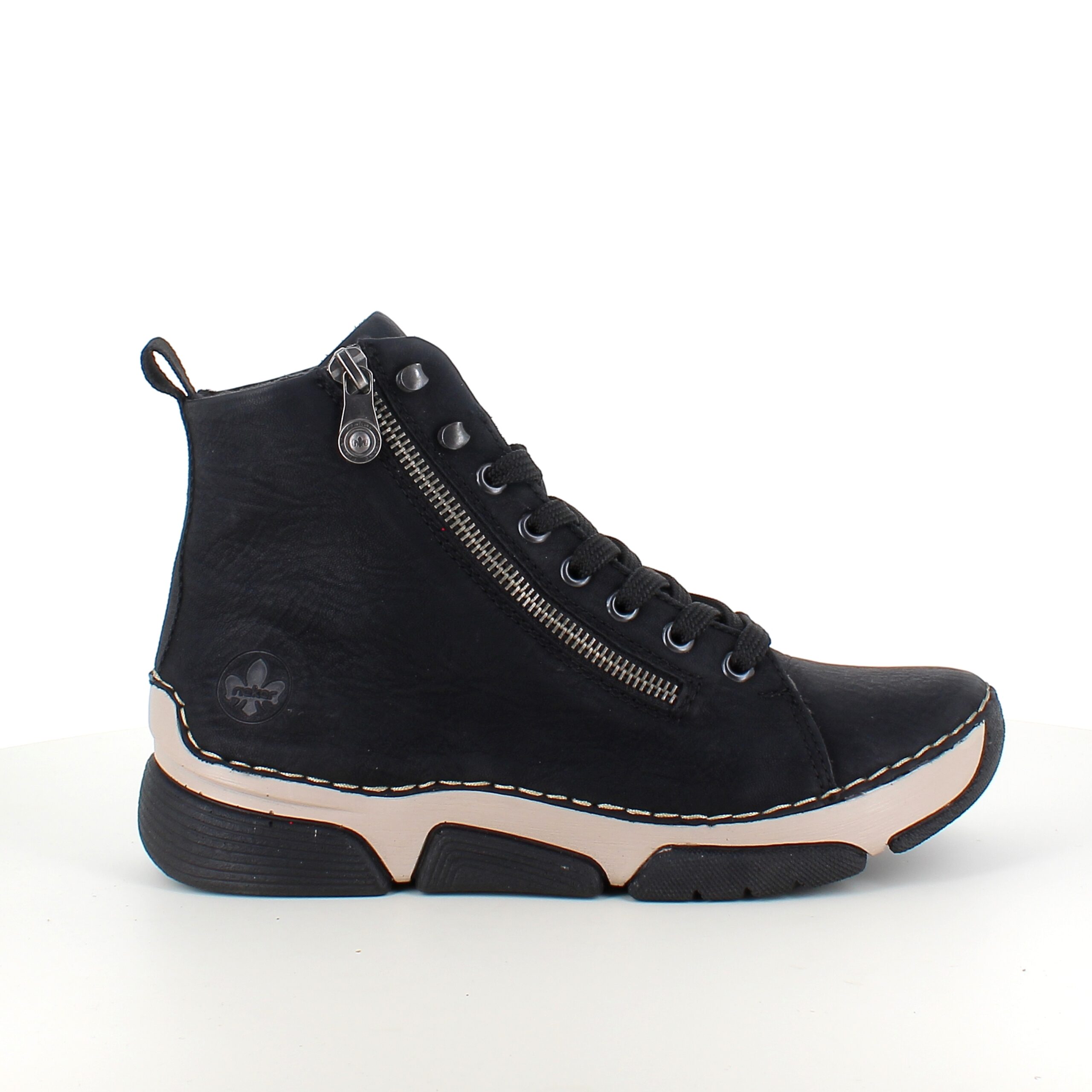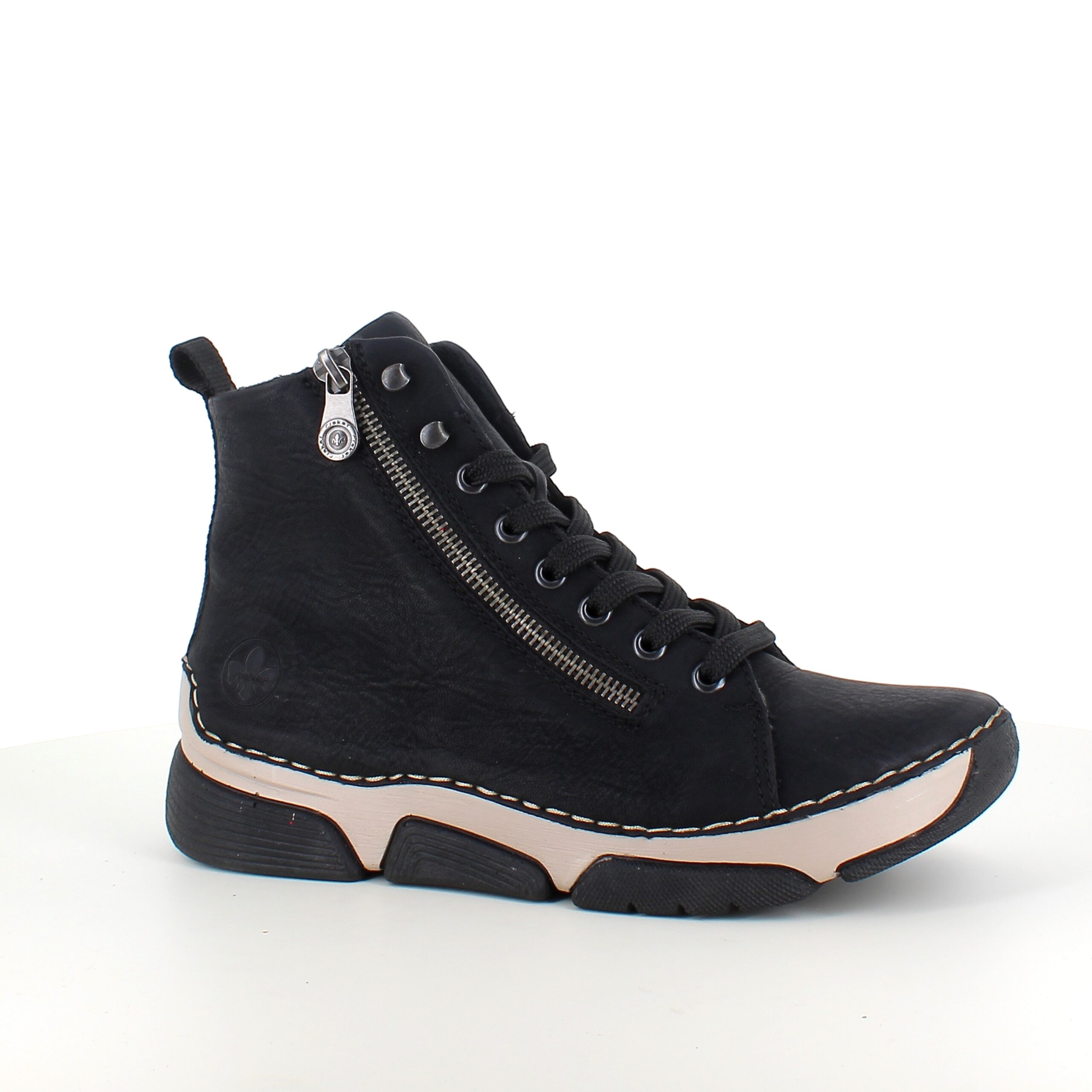 Innvendig er den foret med lett materiale og utstyrt med en myk Rieker Antistress såle, som støtter fotens naturlige bevegelse og gir en behagelig følelse hele dagen.