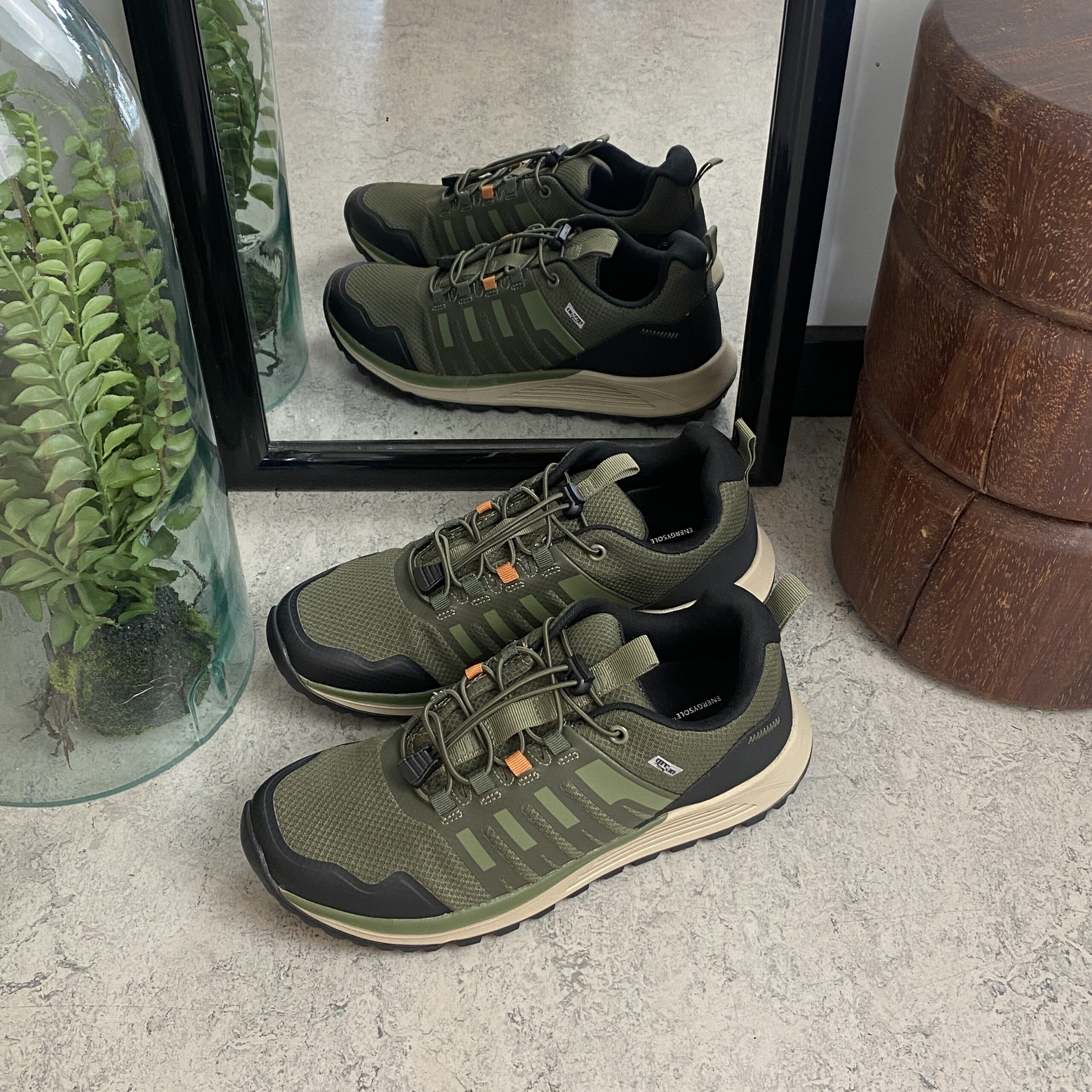 Overdelen er laget av slitesterke materialer som gir stabilitet og lang levetid, samtidig som skoen er pustende.